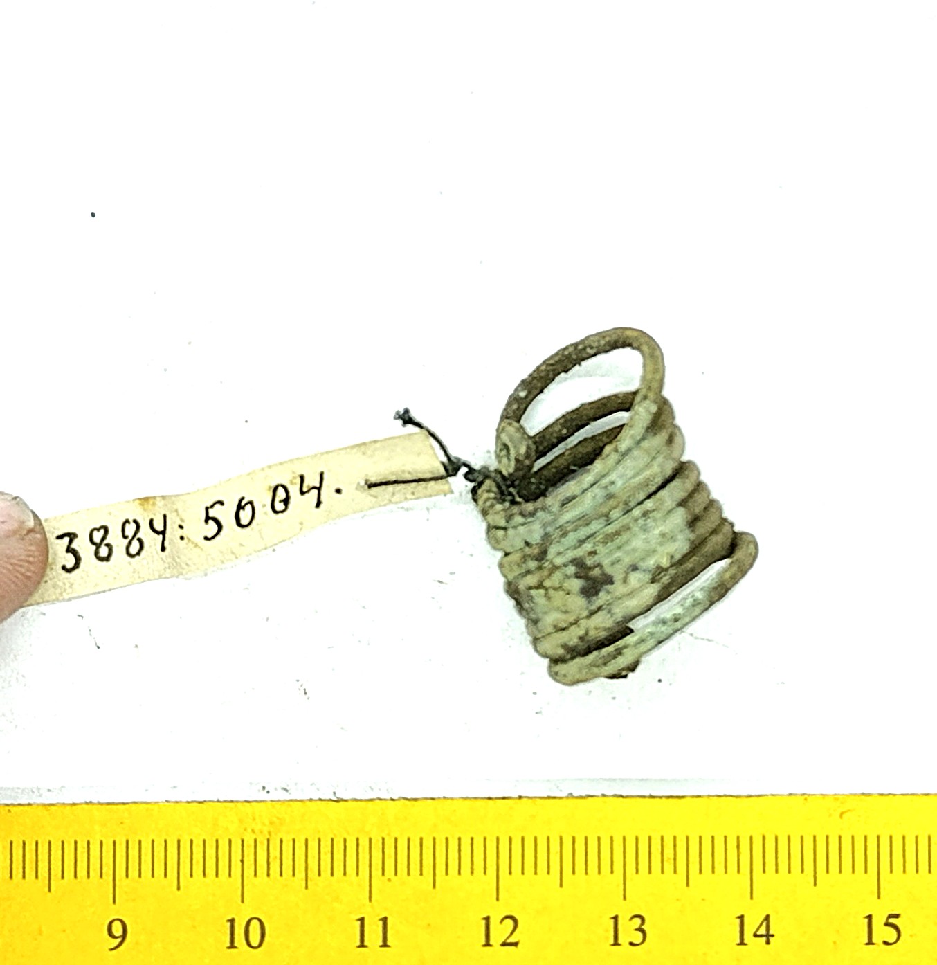 Pakseneva keskosaga sõrmus, vasesulam. Väga levinud sõrmuse tüüp Eesti saartel, mida leitakse nii põletusmatustega kivikalmetest kui ka laibamatustest. Võib-olla oli kasutusel juba 12. sajandil (Mägi 2002, 109).