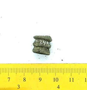 Helmes, vasesulam. Selliseid pronkshelmeid leitakse nii põletusmatustega kivikalmetest (nt. Mägi 2002, tahv. 13: 19–21) kui ka 12.-13. sajandi laibamatustest (vt. ka Spirģis 2008, 421). Eesti aladel seostuvad need eelkõige vöökaunistustega.