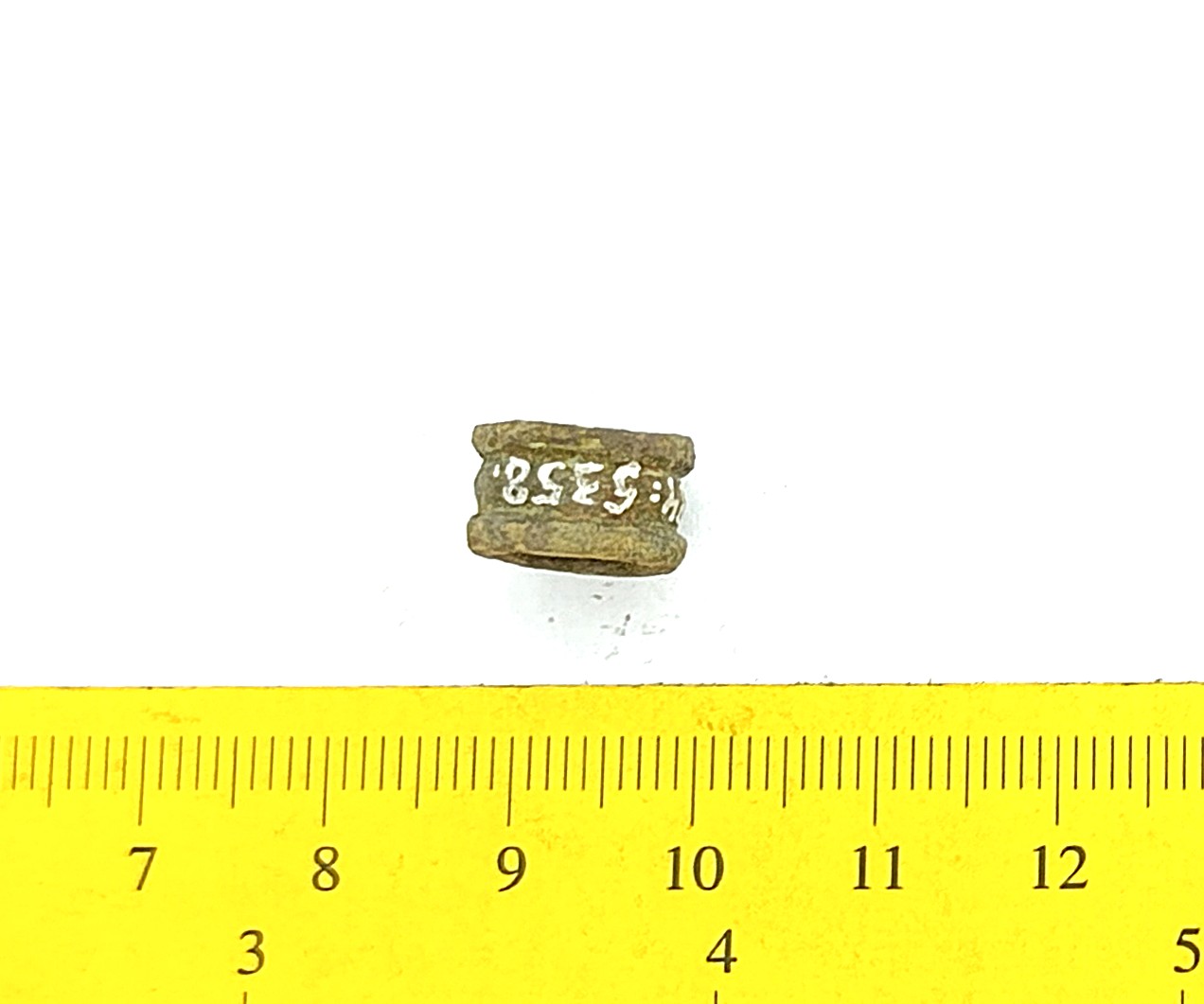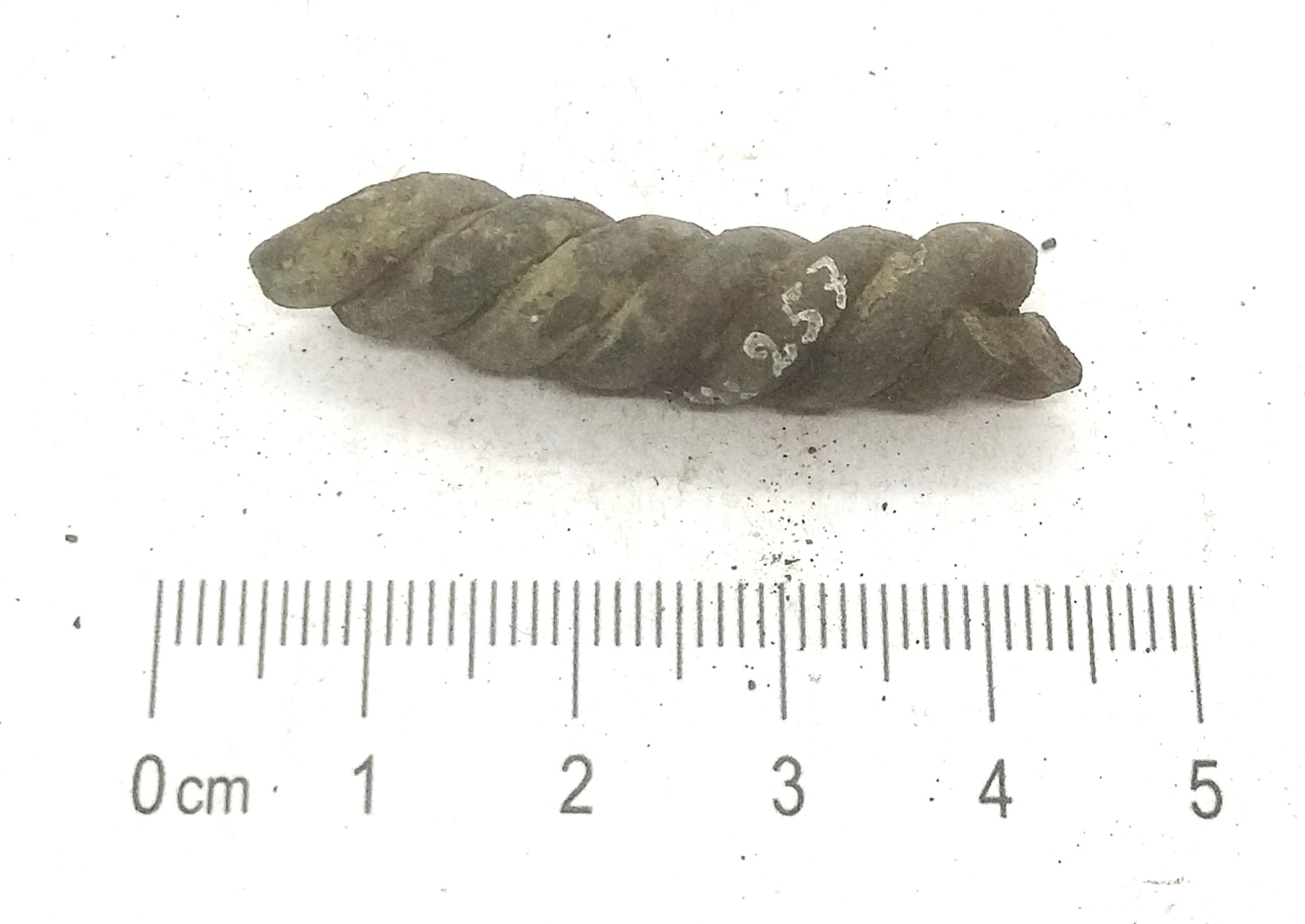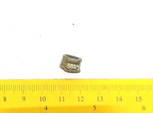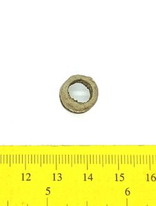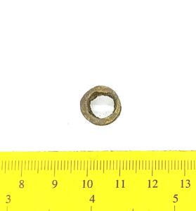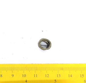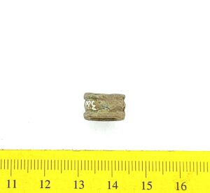 Kaelavõru katke, vasesulam, keeratud kolmest traadist. Sellistel kaelavõrudel oli tavaliselt kaks traatidest keeratud kaart, ühendatud haagiga. Neid on leitud laibamatustest (näiteks Loona, Valjala: Mägi 2002, tahv. 98: 1; Mägi et al 2019, 97), kuid selliseid katkeid on ka põletusmatustega kivikalmetes.