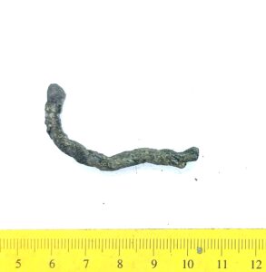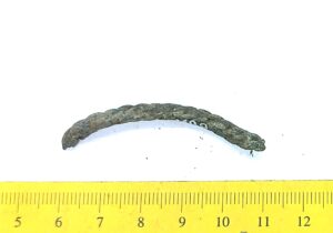 Punutud keti katke, vasesulam. Peenikestest vasesulamtraatidest plett-tehnikas punutud kettide katked on kõrvutatud Karjala sarnaste leidudega (Ligi 1993, 50). Lätis ilmusid sellised ketid 12. sajandi lõpus ning olid kasutusel ka 13. sajandil (Zariņa 2006, 276; Spirģis 2008, 175).