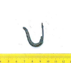 Kaelavõru katke, vasesulam. Mitmest traadist keeratud kaelavõrud dateeruvad 12.–13. sajandisse ning on üks levinumaid kaelavõrude tüüpe Saaremaa arheoloogilises materjalis (Mägi 2002, 107). Lätis, eriti Ida-Lätis kanti silmusotstega kolmest traadist keeratud kaelavõrusid juba 11.–12. sajandil (Zariņa 2006, 246).