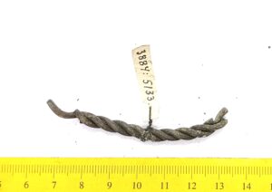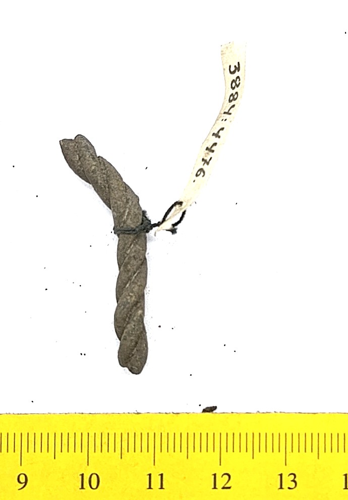 Kaelavõru katke, vasesulam. Mitmest traadist keeratud kaelavõrud dateeruvad 12.–13. sajandisse ning on üks levinumaid kaelavõrude tüüpe Saaremaa arheoloogilises materjalis (Mägi 2002, 107). Lätis, eriti Ida-Lätis kanti silmusotstega kolmest traadist keeratud kaelavõrusid juba 11.–12. sajandil (Zariņa 2006, 246).