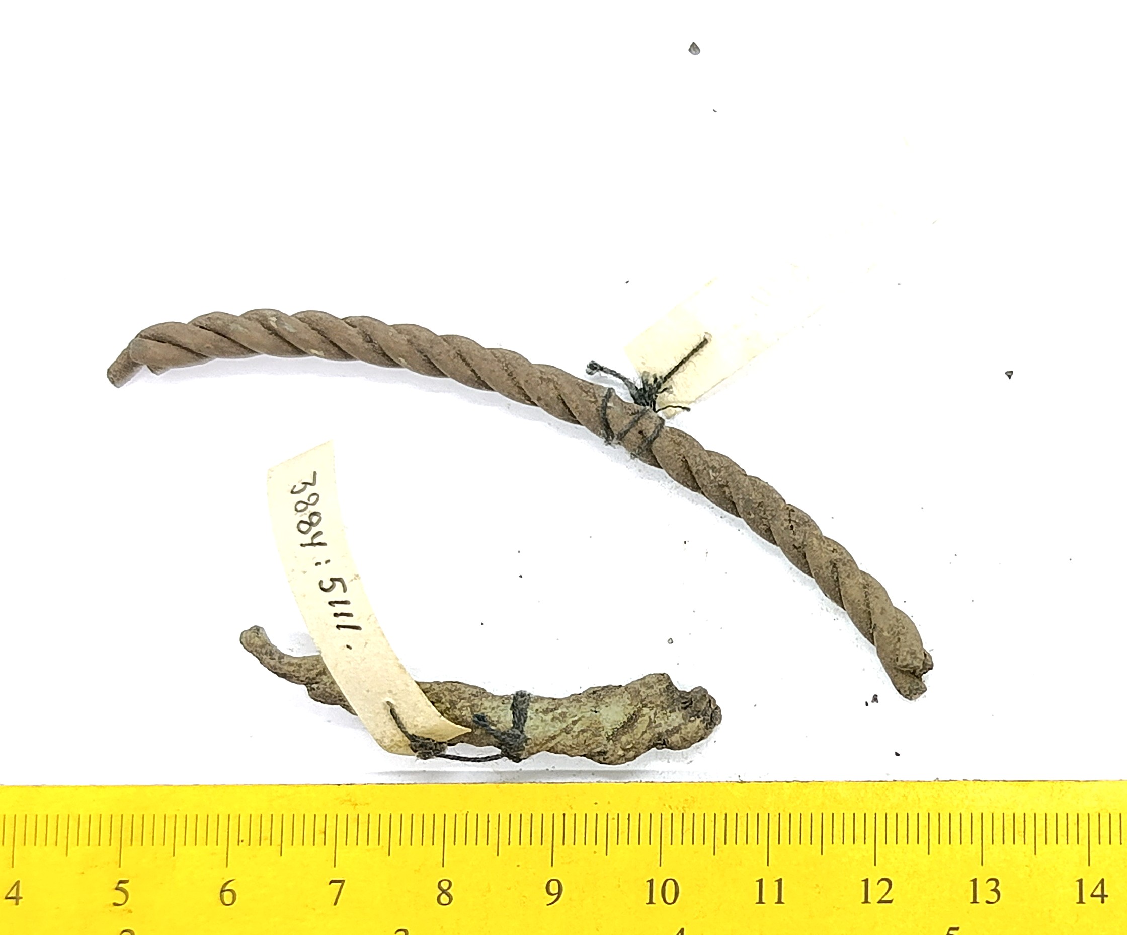 Kaelavõru katked, 2 vasesulam. Mitmest traadist keeratud kaelavõrude katked on levinud Saaremaa põletusmatustega kivikalmetes. Kuna nende täpset tüüpi on enamasti võimatu määrata, dateeruvad need laia vahemikku 10.-13. sajandini (vt ka: Mägi 2002, 107).