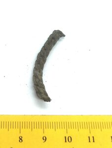Kaelavõru katked, 4, vasesulam. Mitmest traadist keeratud kaelavõrude katked on levinud Saaremaa põletusmatustega kivikalmetes. Kuna nende täpset tüüpi on enamasti võimatu määrata, dateeruvad need laia vahemikku 10.-13. sajandini (vt ka: Mägi 2002, 107).