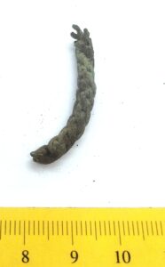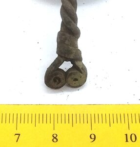 Kaelavõru katke, vasesulam. Mitmest traadist keeratud kaelavõrud dateeruvad 12.–13. sajandisse ning on üks levinumaid kaelavõrude tüüpe Saaremaa arheoloogilises materjalis (Mägi 2002, 107). Lätis, eriti Ida-Lätis kanti silmusotstega kolmest traadist keeratud kaelavõrusid juba 11.–12. sajandil (Zariņa 2006, 246).