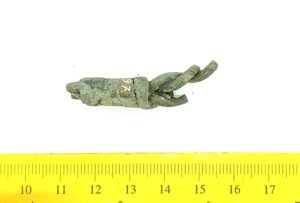 Kaelavõru katke, vasesulam. Sellised liitkaelavõrud on kokku pandud tavaliselt kolmest eraldi võrust, kasutades pronksist klambreid. Selliseid kaelavõrusid on leitud Eestist ainult Saaremaalt (Mägi 2002, 107; 2019, 73). Sarnaseid leide on saadud Kuramaalt ning neid kandsid 10.–11. sajandil ka semgalid (Mägi 2002, 144; Tvauri 2014, 144; Griciuvienė 2005, 76-77).