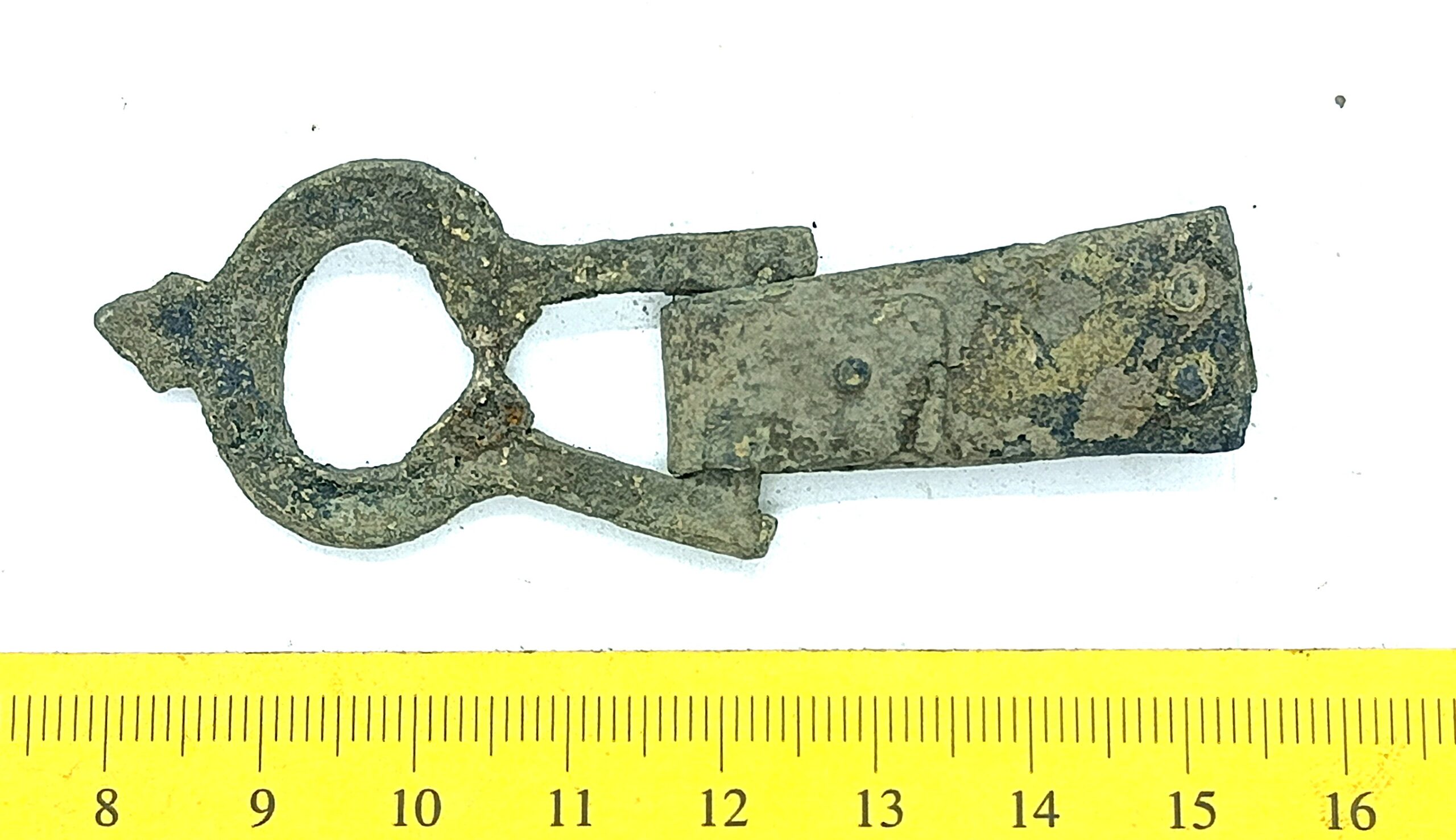 Ojamaa-Balti tüüpi pannal, vasesulam. Varasemalt on arvatud, et taolised pandlad pärinevad Ojamaalt, kuid hilisemad andmed näitavad, et pandla vorm võis algselt pärineda Baltikumist ning edasi areneda Ojamaal (Lehtsalo-Hilander 1982, 149–151; Mägi 2002, 97; Ojamaa materjali nägemiseks vaata Thunmark-Nylen 1992, Pl. 127–129). Varaseimad selle tüübi pandlad kuuluvad 10. sajandi teise poolde, kuid hilisemaid vorme leidub ka veel 13. sajandi laibamatustes (nt Zariņa 2006, 233-237). Käesolev leid on ilmselt pigem varane variant.