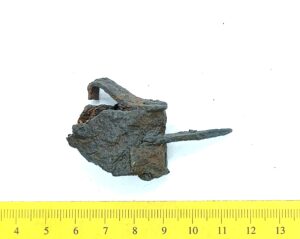 Kolmnurkse esiosaga pannal, raud. Võib-olla valjaste pannal. Taoliste pannalde küljes on tavaliselt lihtne raudnaast. Neid leitakse peamiselt kivikalmetest, kus neid on raske täpsemalt dateerida.