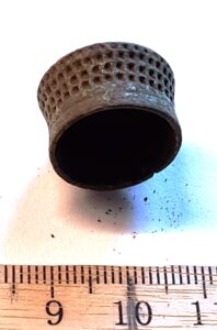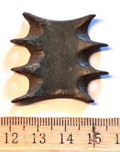 Stiliseeritud loomapeakujuline rihmakand, vasesulam. Sellised on Eesti, Sooma ja Läti rannikualade materjalis väga levinud (Jets 2012, 166-178). Need kuuluvad valdavalt 11.-12. sajandisse, kuigi võisid ilmuda juba 10. sajandi lõpus. Üksikuid selliseid rihmakandu on leitud ka 13. sajandi laibamatustest, kuid seal on need tõenäoliselt ülejäänud panustest vanemad esemed (nt. Mandel 2017, 39, tahv. X).
