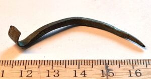 Hoburaudsõle nõel, vasesulam. Üleminek kannale sujuv, seega ilmselt hiliskeskaegne või varauusaegne.