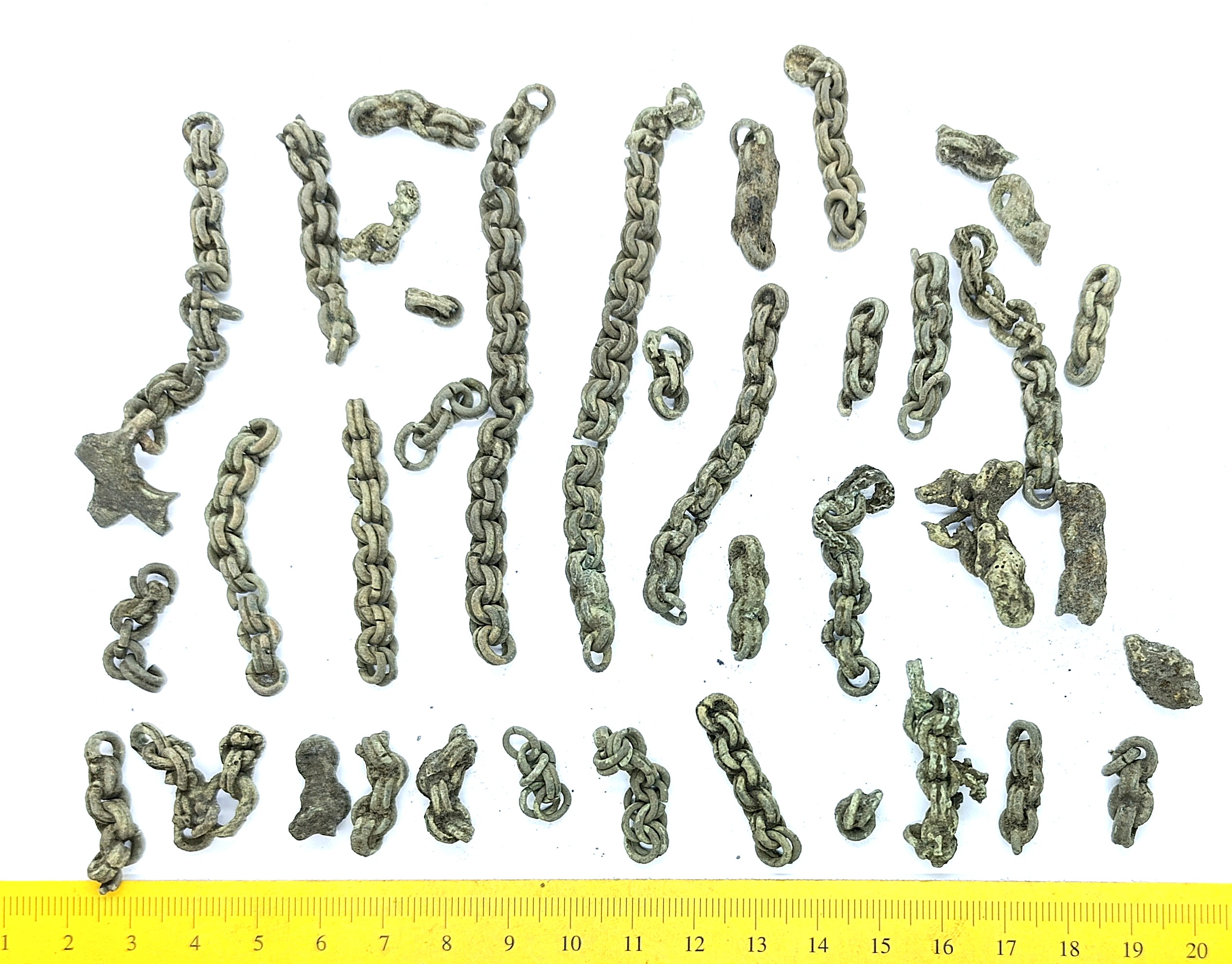 Kahekordsetest rõngaslülidest keti katked, 2, vasesulam.