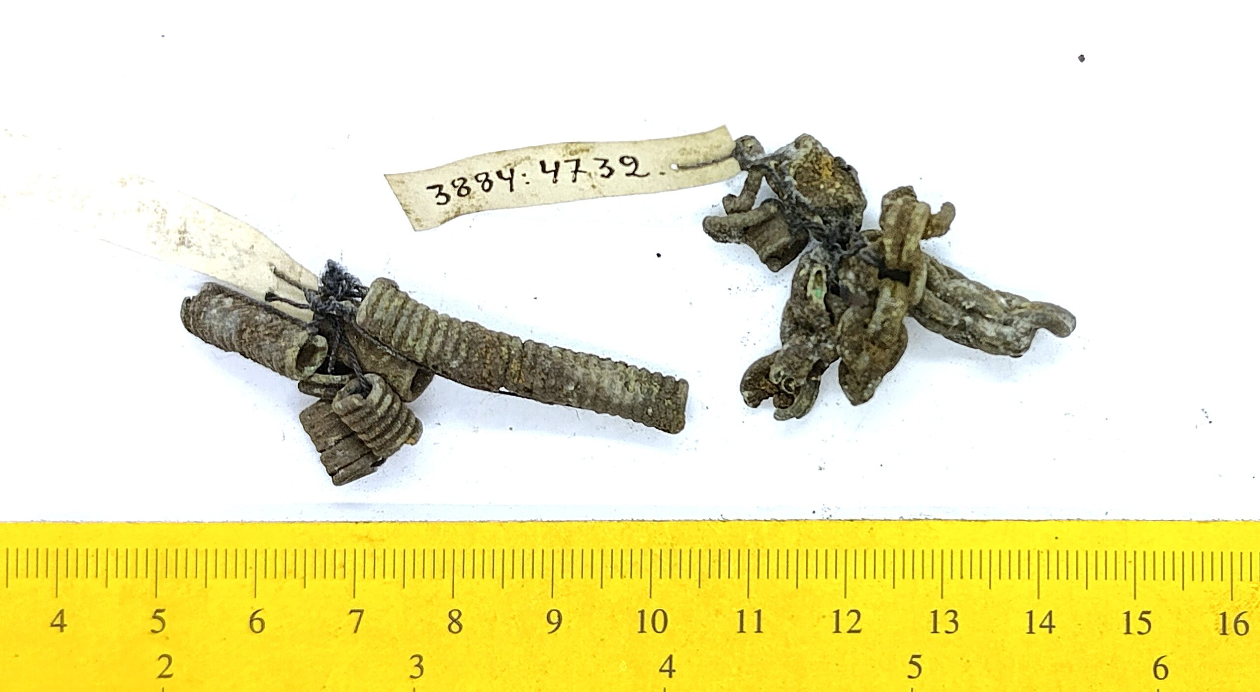 Kahekordsetest rõngaslülidest keti katked koos spiraaltorudega, vasesulam.