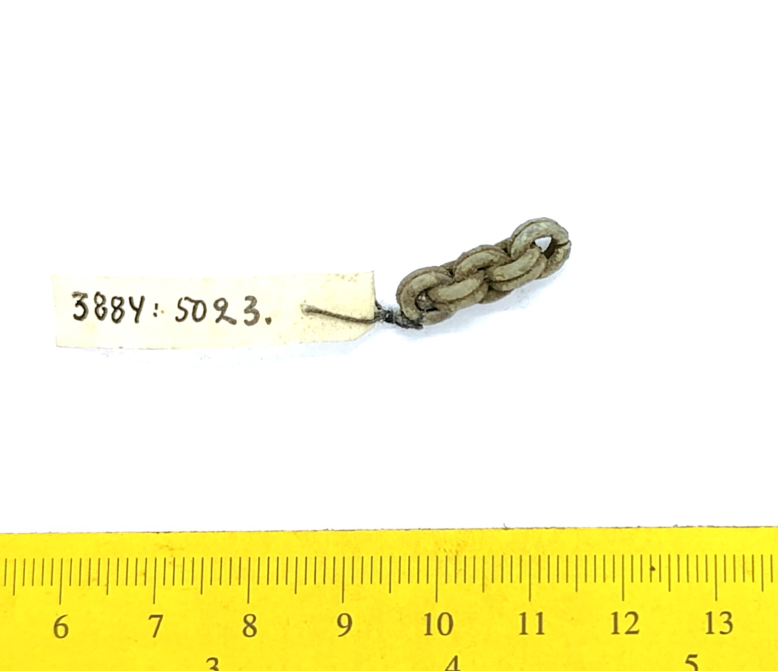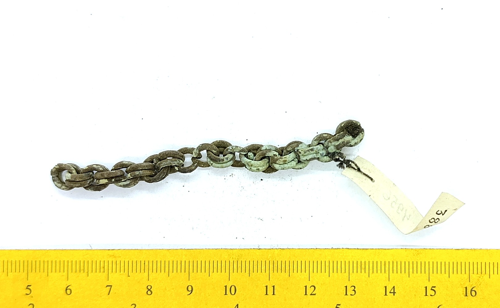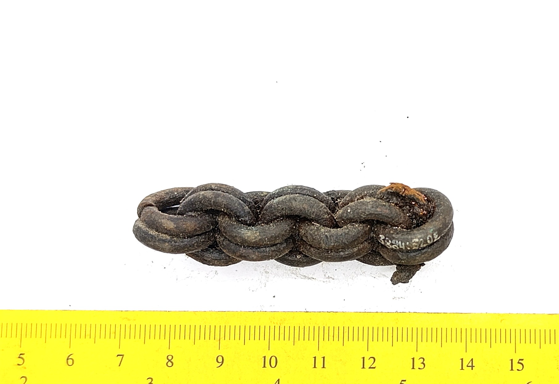 Kahekordsetest rõngaslülidest keti katke, vasesulam.