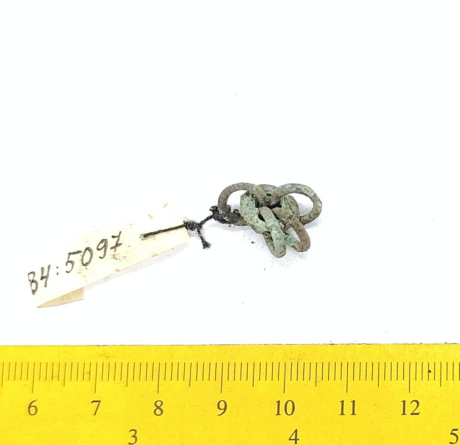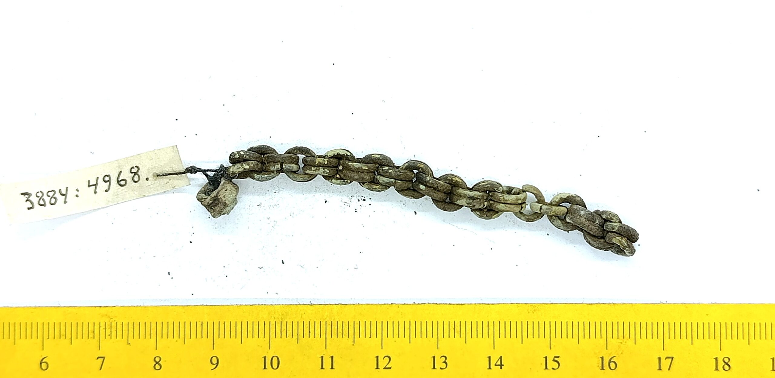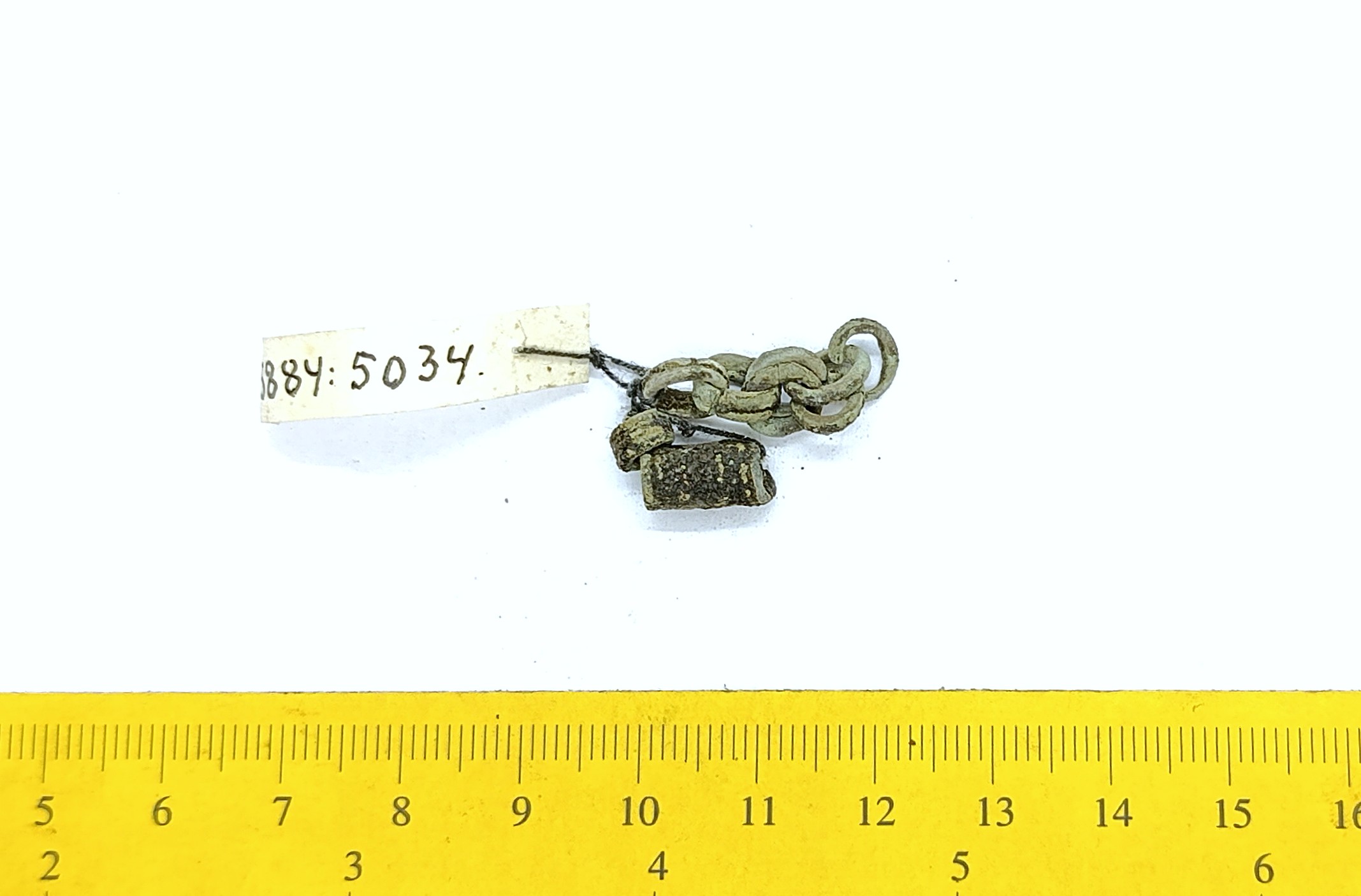 Kahekordsetest rõngaslülidest keti katke, vasesulam.