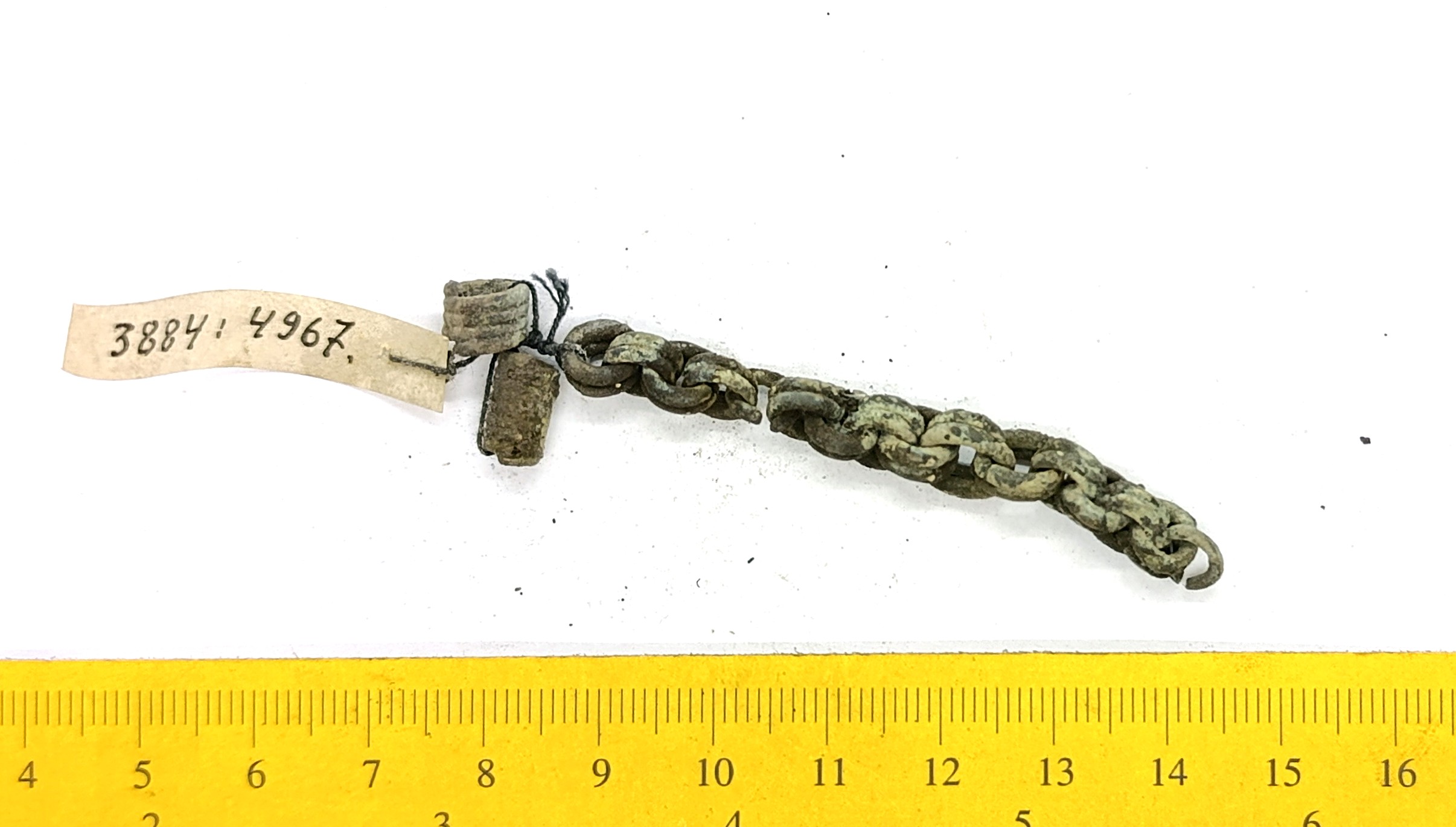 Kahekordsetest rõngaslülidest keti katke koos spiraaltoruga, vasesulam.