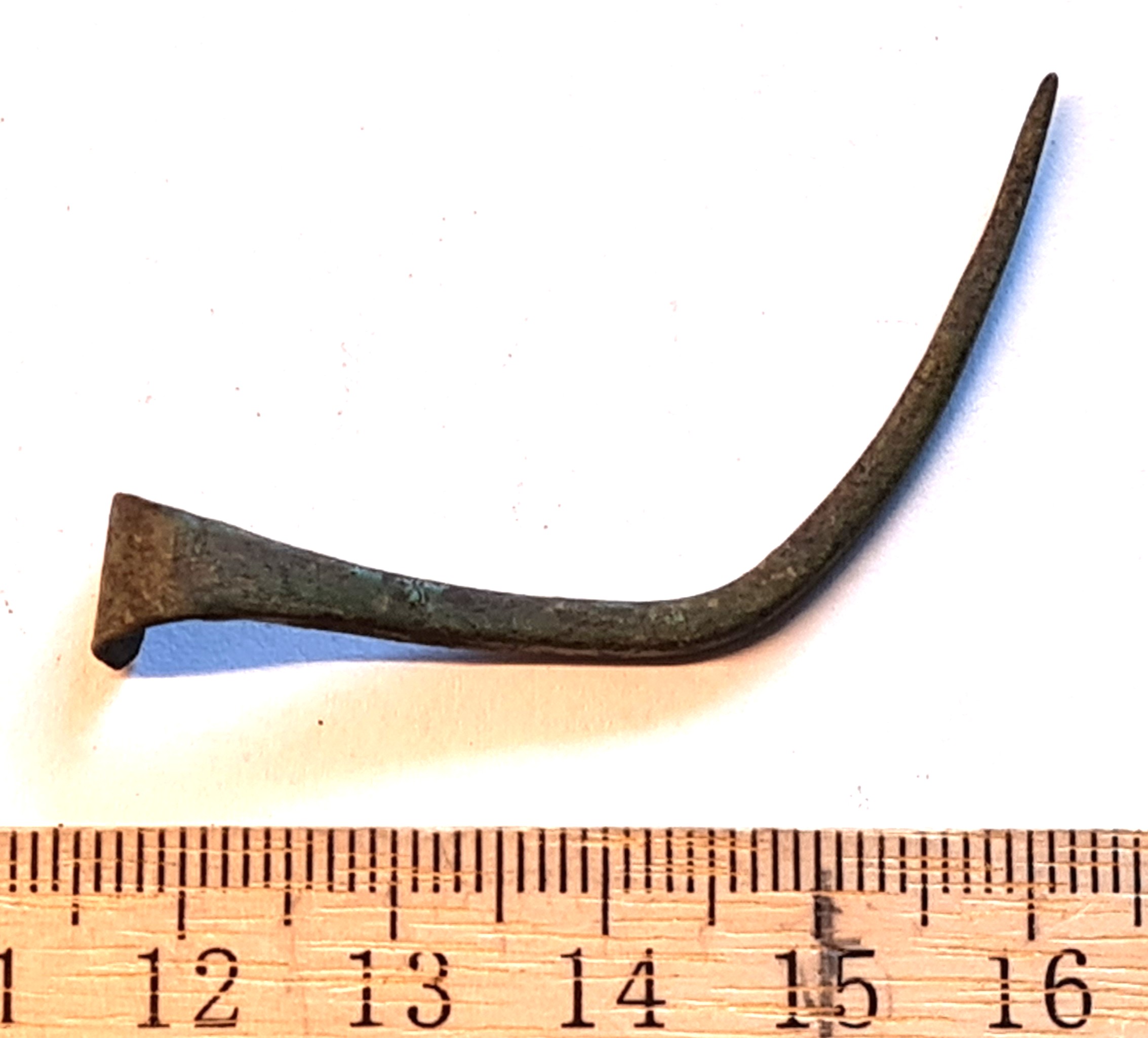 Hoburaudsõle nõel, vasesulam. Üleminek kannale sujuv, seega ilmselt hiliskeskaegne või varauusaegne.
