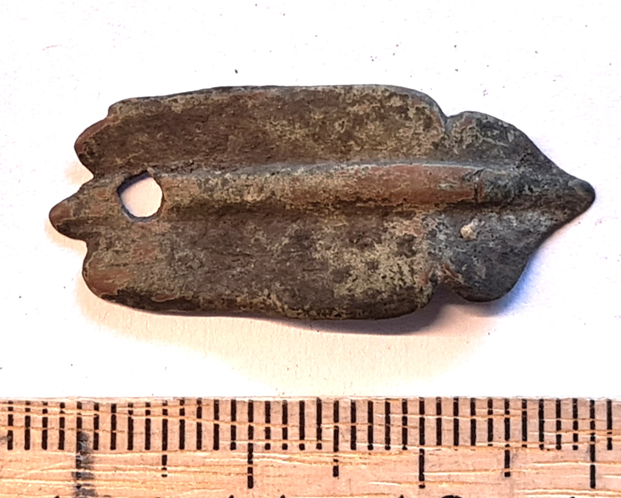 Naast, vasesulam. Trapetsikujuline, kohrutatud muhkudest ornamendiga. Kitsamas küljes kolm, laiemas kuus ümarat auku. Naast võib pärineda näiteks peaehte või rõhkude küljest, kuid kohrutatud ornament viitab eelkõige keskajale.