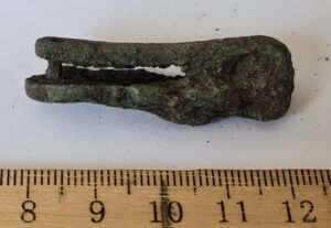 Stiliseeritud loomapeakujuline rihmakand, vasesulam.