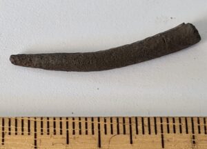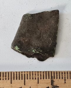 Ehtenõela katke, vasesulam. Saaremaa-tüüpi kolmnurkpeaga nõel.