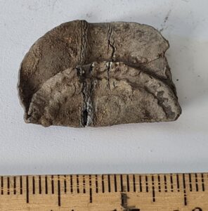 Rinnaleht, tina (?). Ümmargune, kokku murtud.