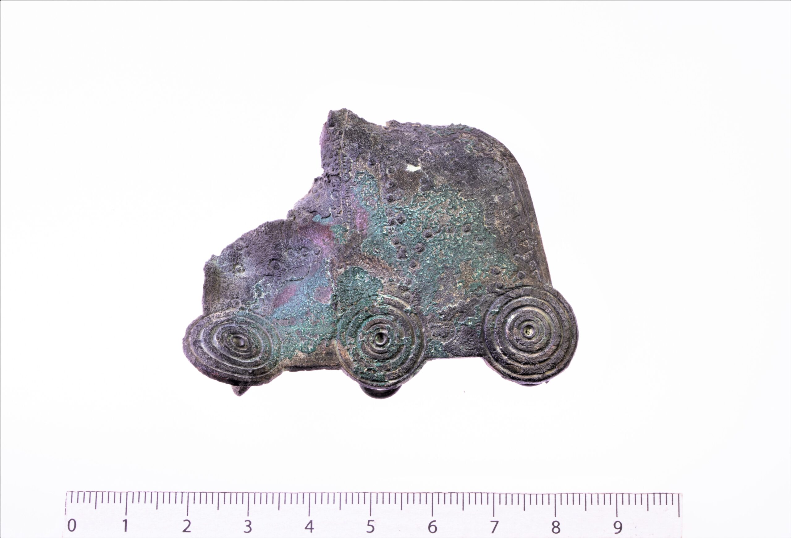 Keekandja, Saaremaa-pärane, pronks. Poolovaalne, ornamenditud kontsentrilistest ringidest ornamendiga. Võimalik, et on olnud hõbetatud.