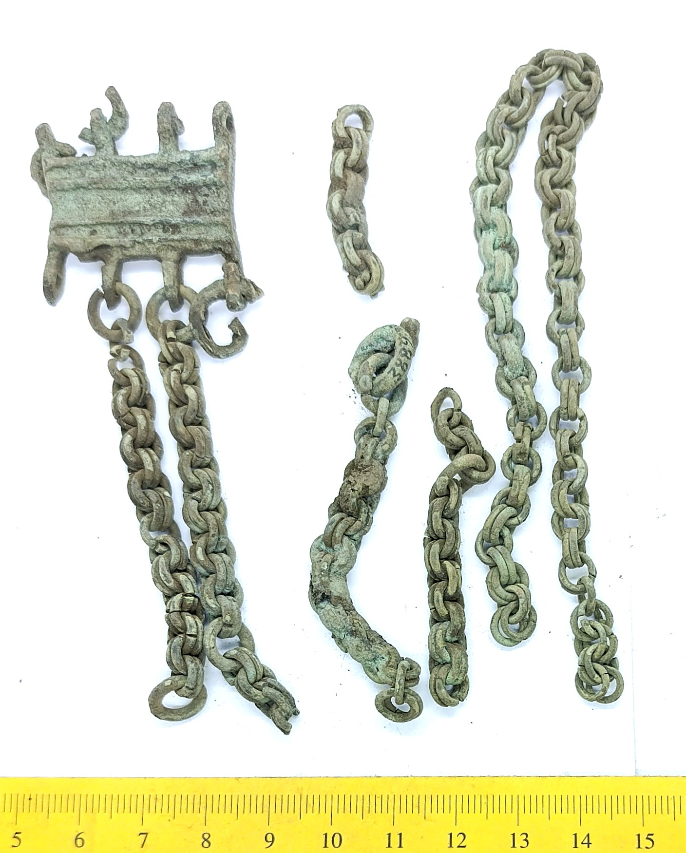Rinnakee vahelüli ja kahekordsetest rõngaslülidest keti katke, vasesulam.