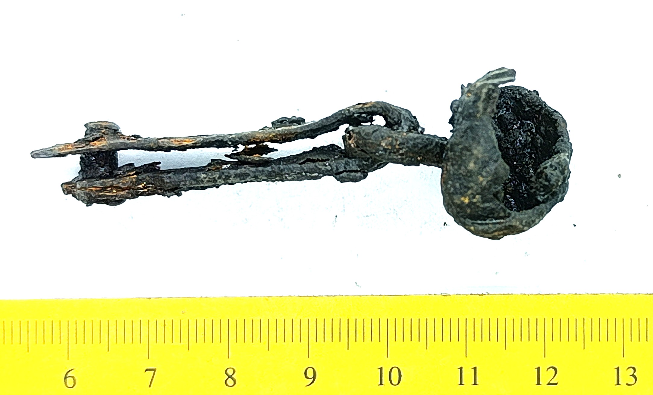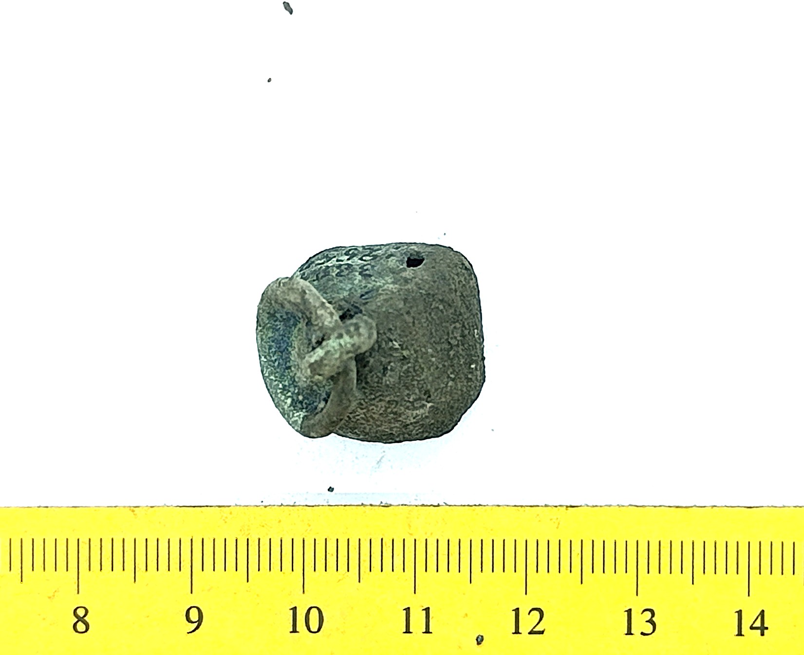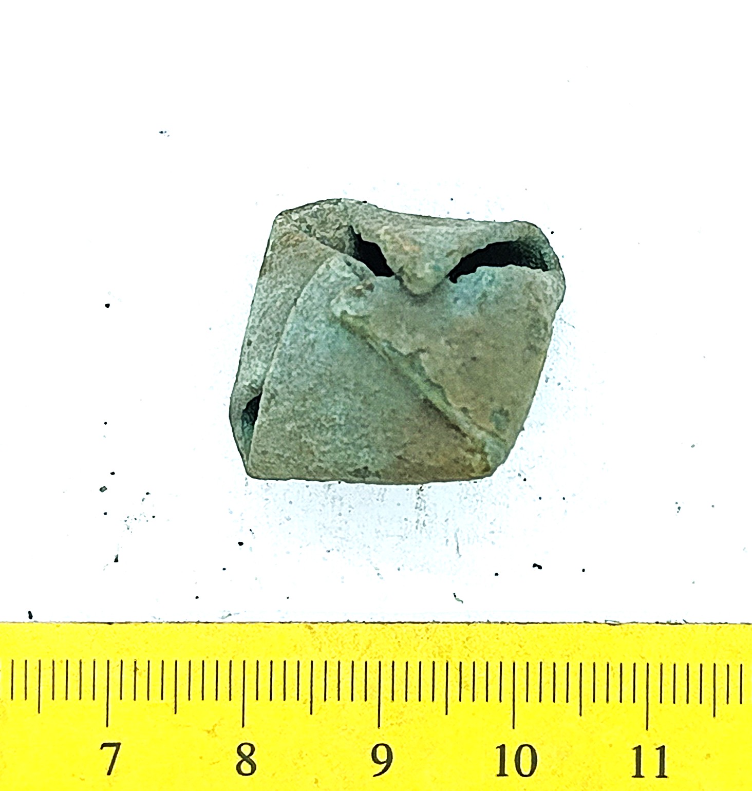Pirnikujuline nelja soonitud lehega kuljus, vasesulam. Sellised kuljuseid on tavalised leiud eriti põletusmatustega kivikalmetes, aga ka näiteks Siksälä kalmes (Mägi 2002, tahv. 33: 7; Valk et al. 2012, 24, 45-46, 310). Ka Lätis on selliseid kuljuseid leitud koos 10.–12. sajandisse dateeruvate keekandjatega (Spirgis 2008, 148, 399, 406, 412 jt.). Rainio rühm 3a või 3b (Rainio 2010, 28).