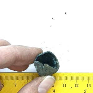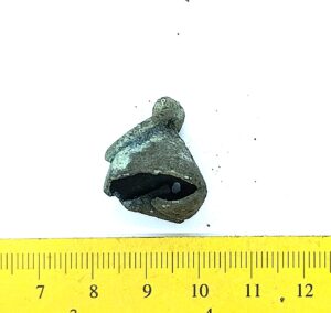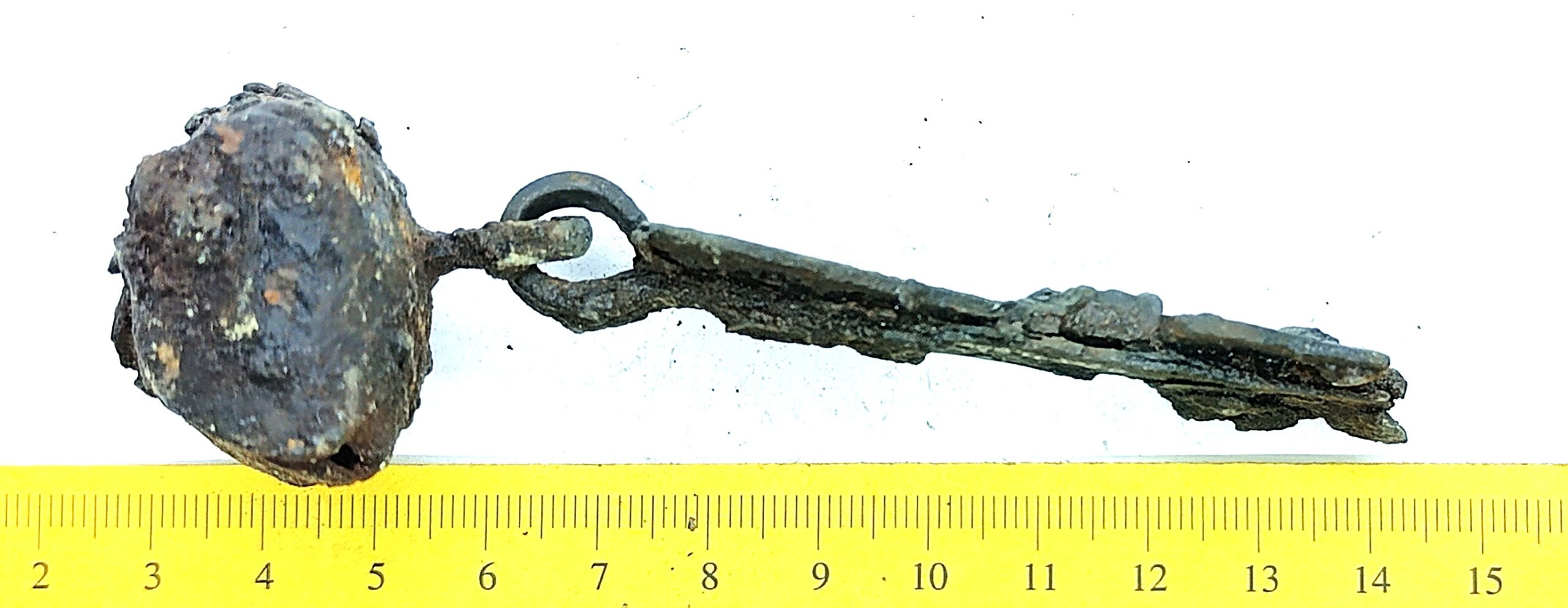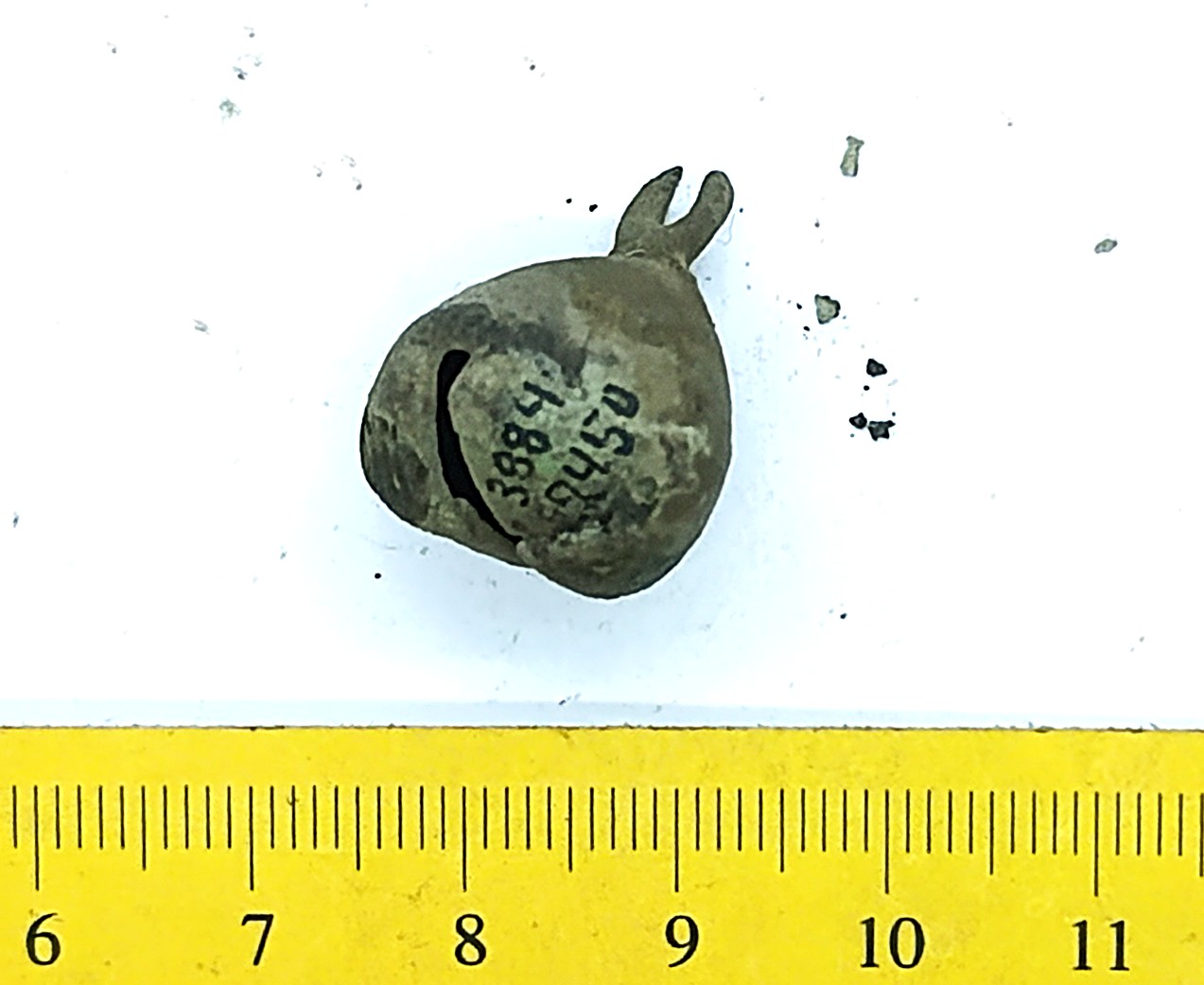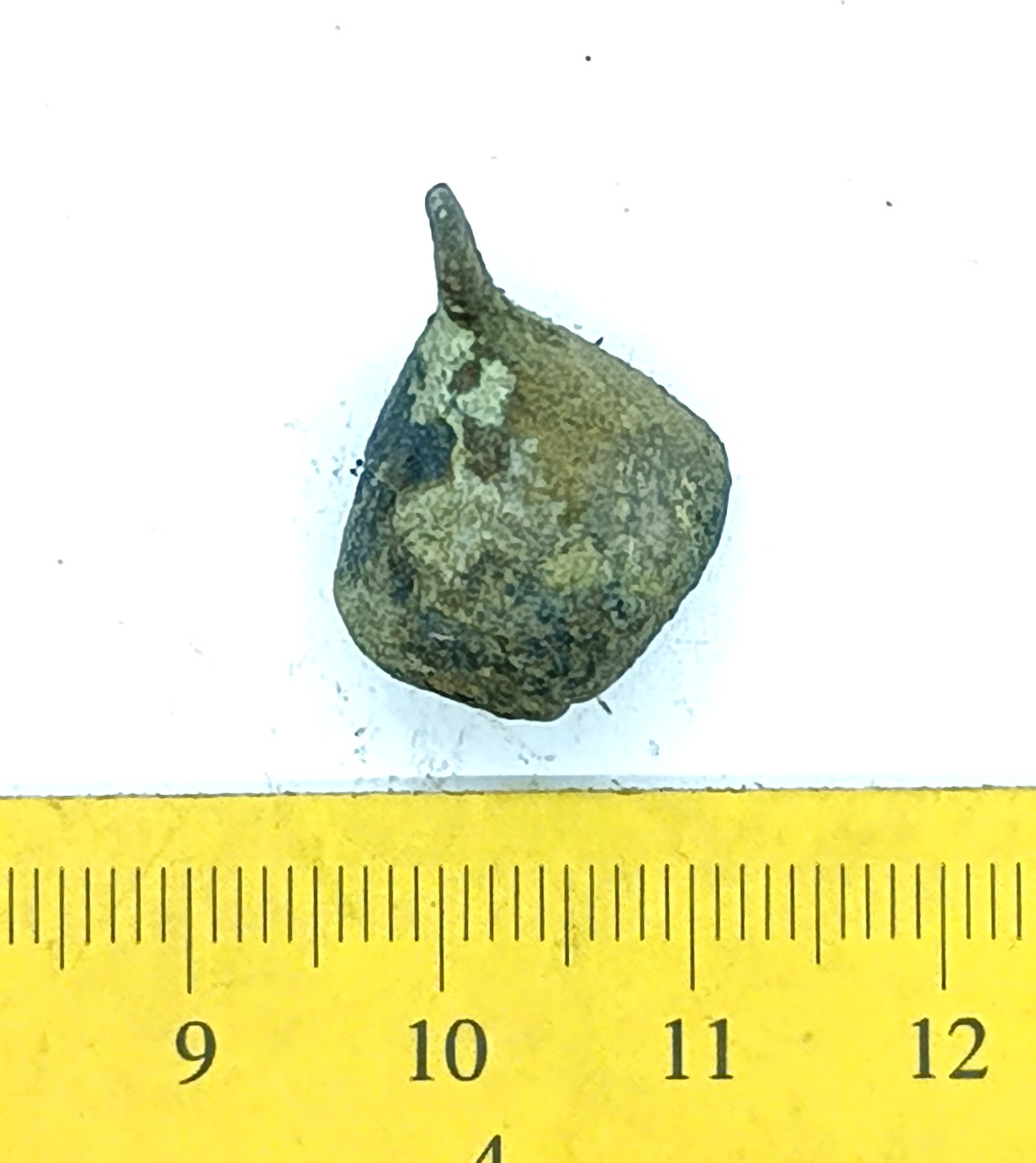 Pirnikujuline nelja soonitud lehega kuljus, vasesulam. Sellised kuljuseid on tavalised leiud eriti põletusmatustega kivikalmetes, aga ka näiteks Siksälä kalmes (Mägi 2002, tahv. 33: 7; Valk et al. 2012, 24, 45-46, 310). Ka Lätis on selliseid kuljuseid leitud koos 10.–12. sajandisse dateeruvate keekandjatega (Spirgis 2008, 148, 399, 406, 412 jt.). Rainio rühm 3a või 3b (Rainio 2010, 28).