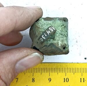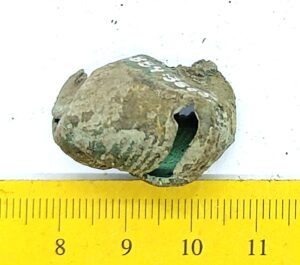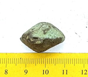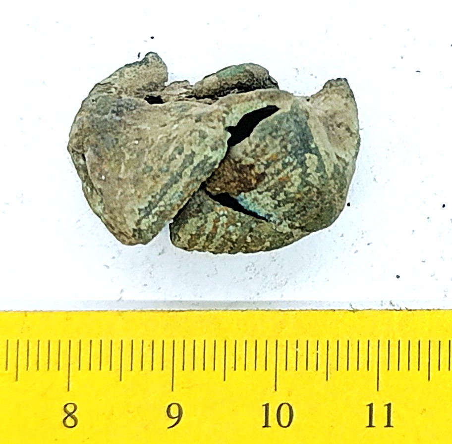 Pirnikujuline nelja soonitud lehega kuljus, vasesulam. Sellised kuljuseid on tavalised leiud eriti põletusmatustega kivikalmetes, aga ka näiteks Siksälä kalmes (Mägi 2002, tahv. 33: 7; Valk et al. 2012, 24, 45-46, 310). Ka Lätis on selliseid kuljuseid leitud koos 10.–12. sajandisse dateeruvate keekandjatega (Spirgis 2008, 148, 399, 406, 412 jt.). Rainio rühm 3a või 3b (Rainio 2010, 28).