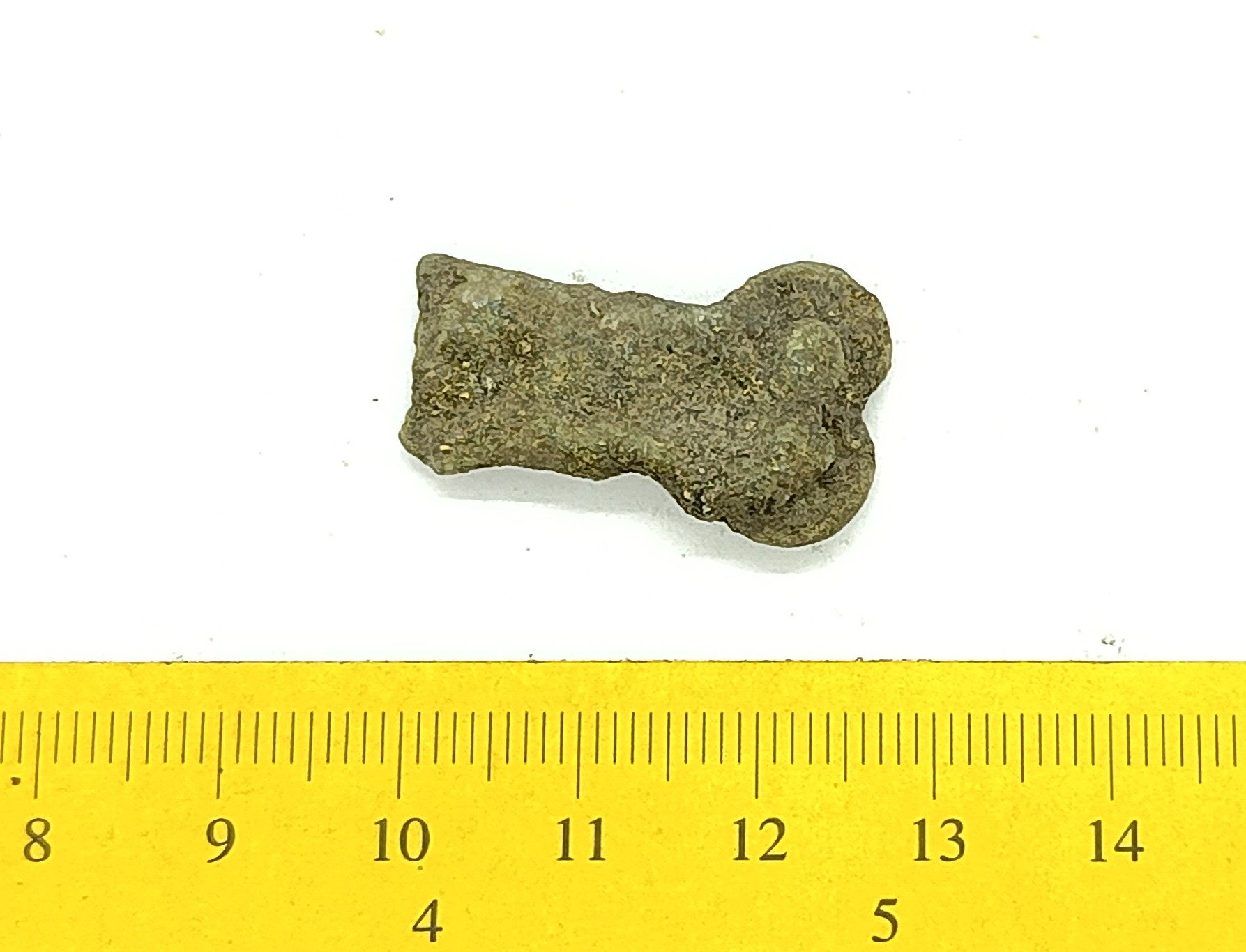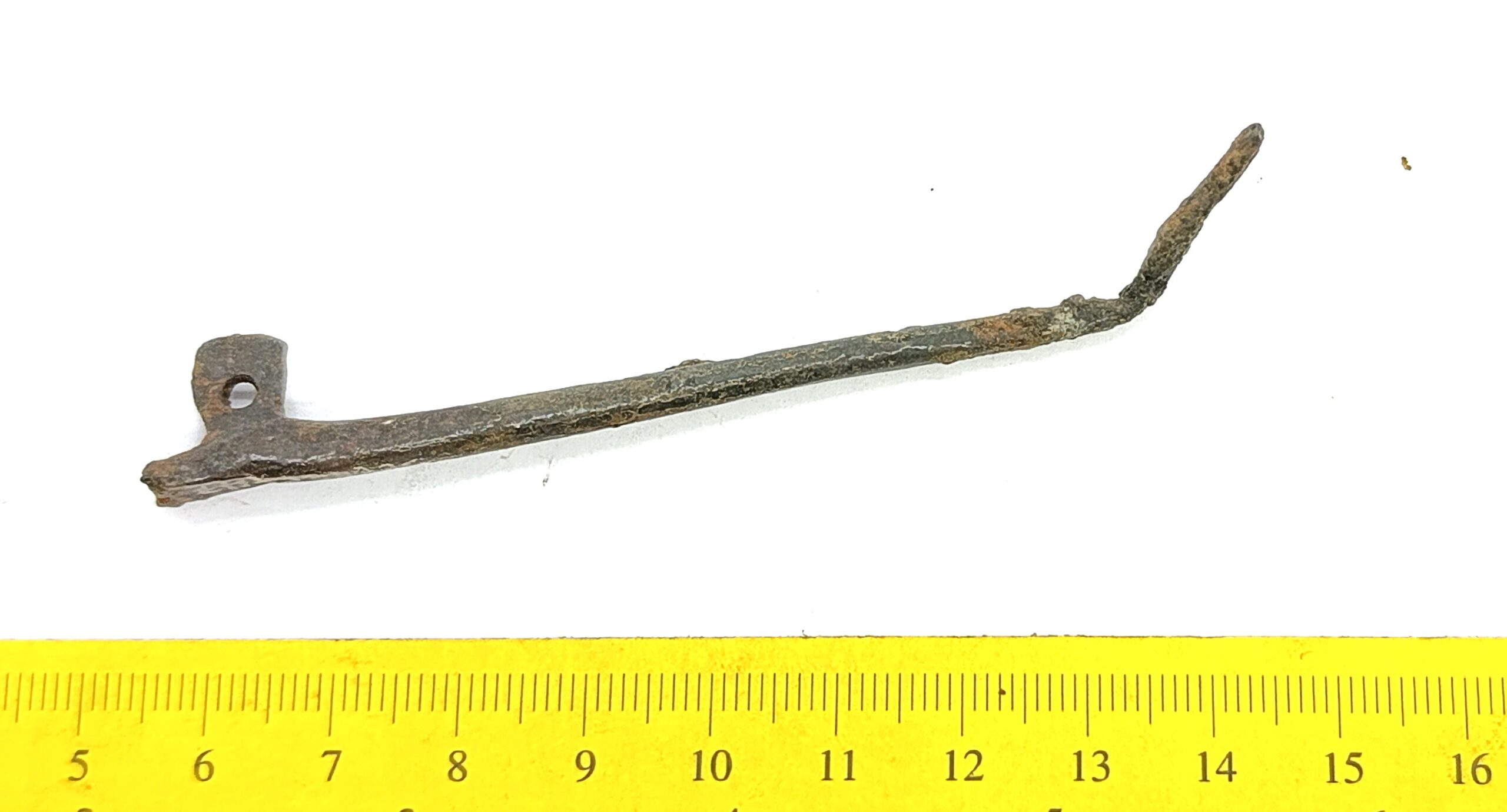 Kokkukasvanud harudega ristpeanõel, vasesulam. Selliseid nõelu on leitud peamiselt 13. sajandi laibamatustest, kuid need võisid tulla kasutusele juba 12. sajandi lõpus (vt. ka Mägi et al 2018, 94, Fig. 14: 1).
