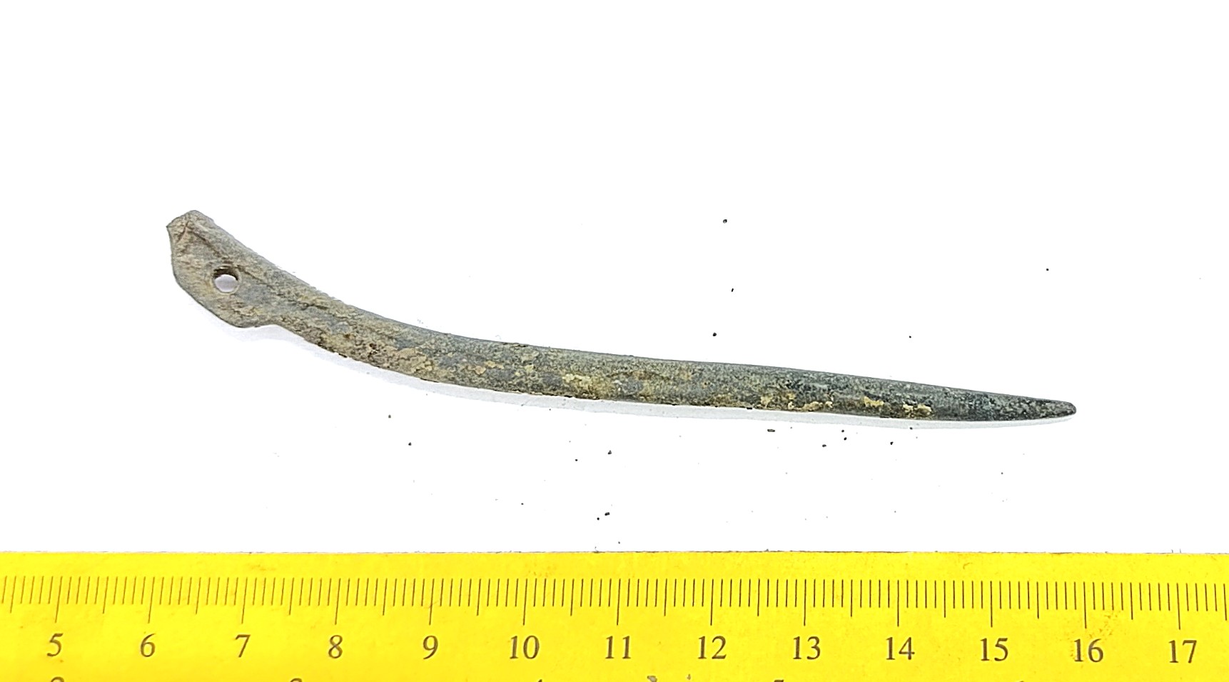 Ehtenõela vars, vasesulam. Aasa kuju järgi otsustades kas 12. sajandi lõpust või 13. sajandist.