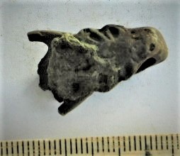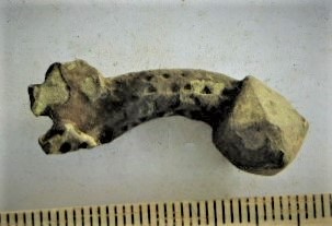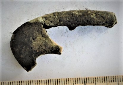 Mõõgatupe otsiku katke, pronks. Kazakevićiuse tüüp I – Skandinaavia mõjutustega baltipärane tüüp, mis on levinud Kuramaal ja Preisimaal. Sarnaseid on leitud ka Saaremaalt.