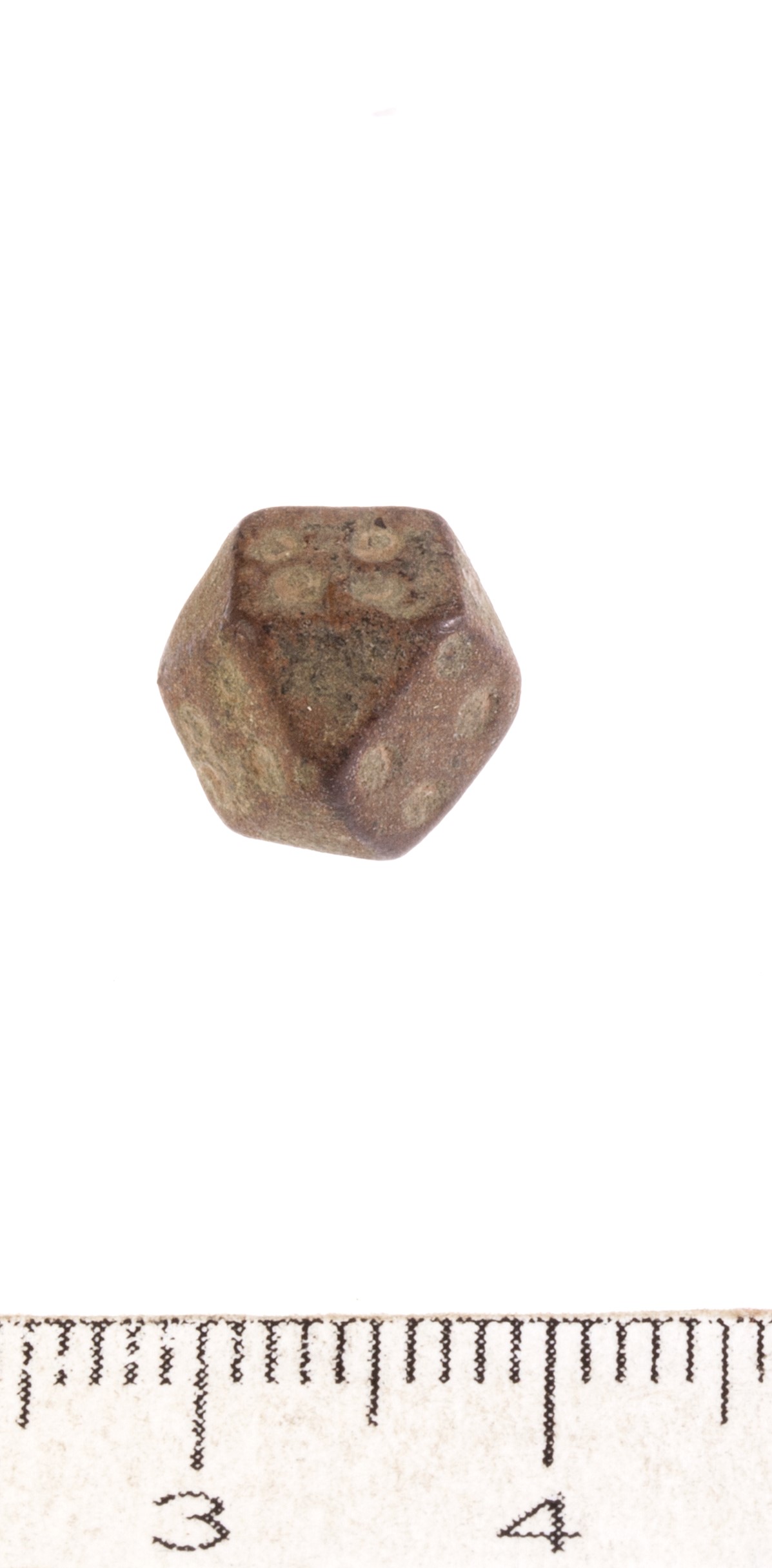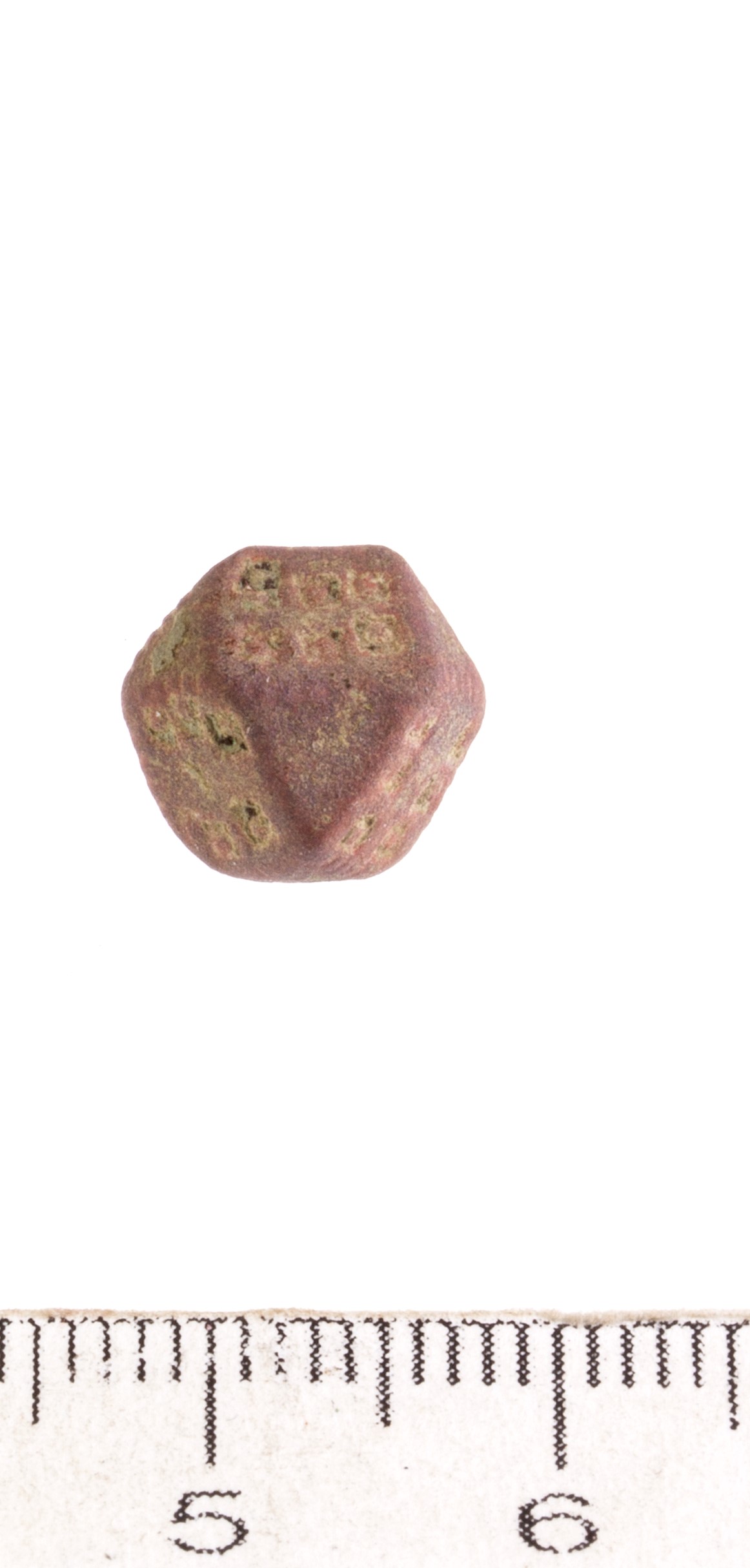 Kaaluviht, fassetitud, pronks. Nelinurksetel tahkudel kuuest sõõrist tähistus, kolmnurksetel tahkudel ühest sõõrist.