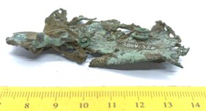 Keekandja, Saaremaa-pärane, vasesulam. Poolovaalne, osaliselt sulanud. Tegemist on Saaremaale tüüpilise keekandjaga, mida leidub ka Põhja- ja Lääne-Eestis, üksikuid eksemplare ka ümbritsevatel aladel. Neid leitakse nii põletus- kui ka laibamatustest, sageli koos Saaremaa-tüüpi nõeltega. Sarnaseid keekandjaid on teada ka Lätist liivlaste alalt, kus need sageli esinevad matustes koos teiste Saaremaa-päraste esemetega (Spirĝis 2008, 144-145). Kuigi varem dateeritud juba 11. sajandisse, olid ilmselt kasutusel põhiliselt 12.-13. sajandil (Mägi 2002, 105).