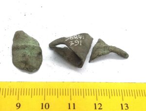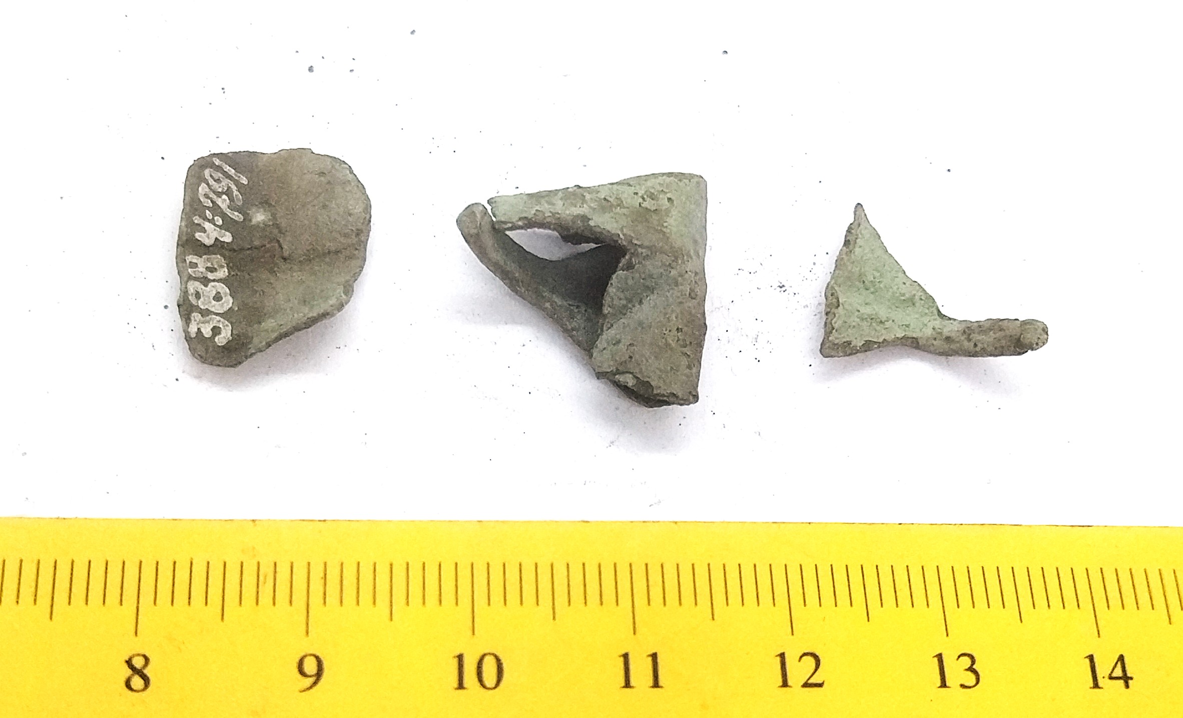 Laia ovaalse kilbiga sõrmuse katked, vasesulam.