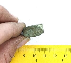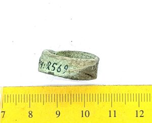 Õhukese laieneva keskosaga sõrmus, vasesulam. Sarnaseid sõrmuseid on leitud Eura Luistari ja Saramäki matustest Soomes, kus need dateeritakse 11. sajandisse (Lehtsalo-Hilander 1982, 124–126) ja Abelnieki matustest Lätis, kus need dateeritakse 11. sajandi II poolest kuni 13. sajandi alguseni (Vasks 2008, 157–158). Lisaks leidub selliseid sõrmuseid Ojamaal, kus need on dateeritud 11.-12. sajandisse (Thunmark-Nylen 1998, Tahv. 143; 2006, 158). Saaremaal on samasugune sõrmus leitud Valjala kirikaiast 13. sajandi või 12. sajandi päris lõpu kontekstist.