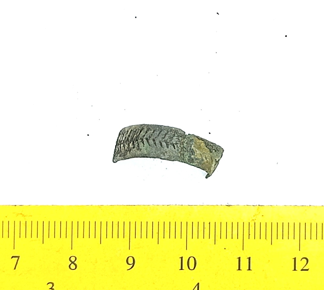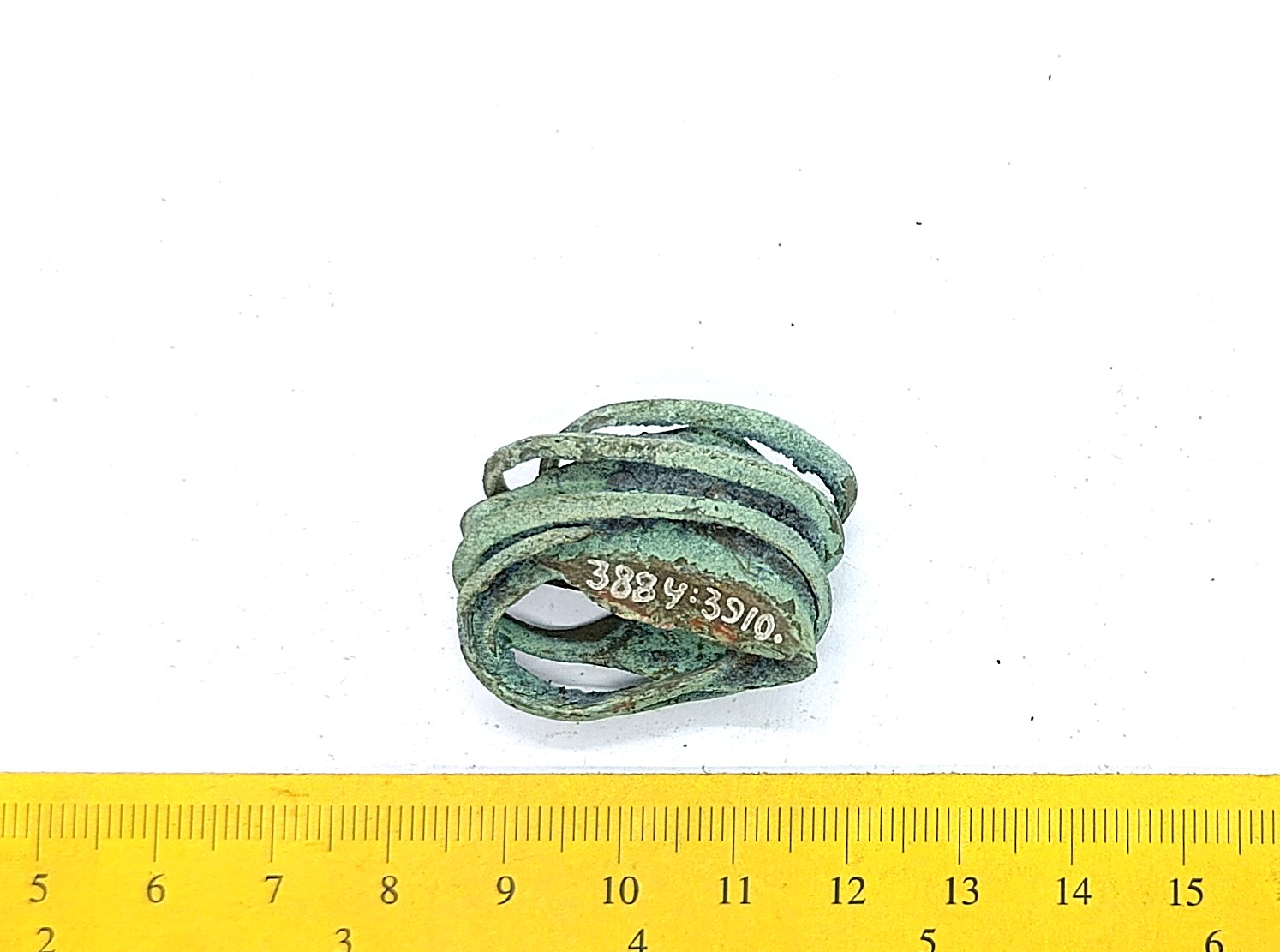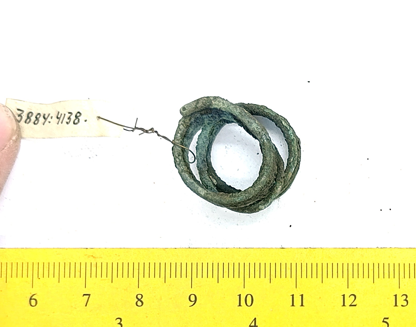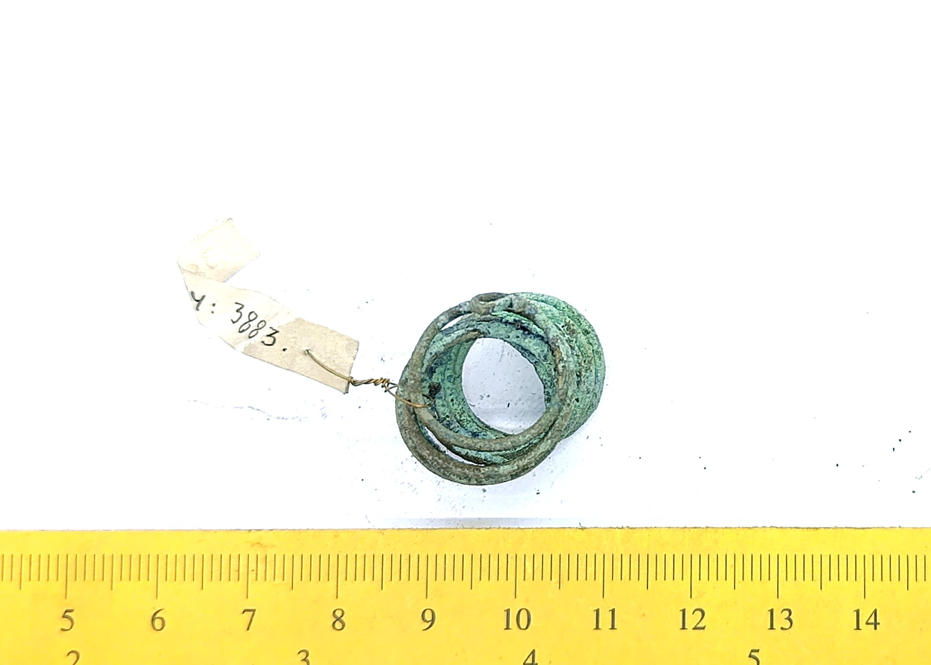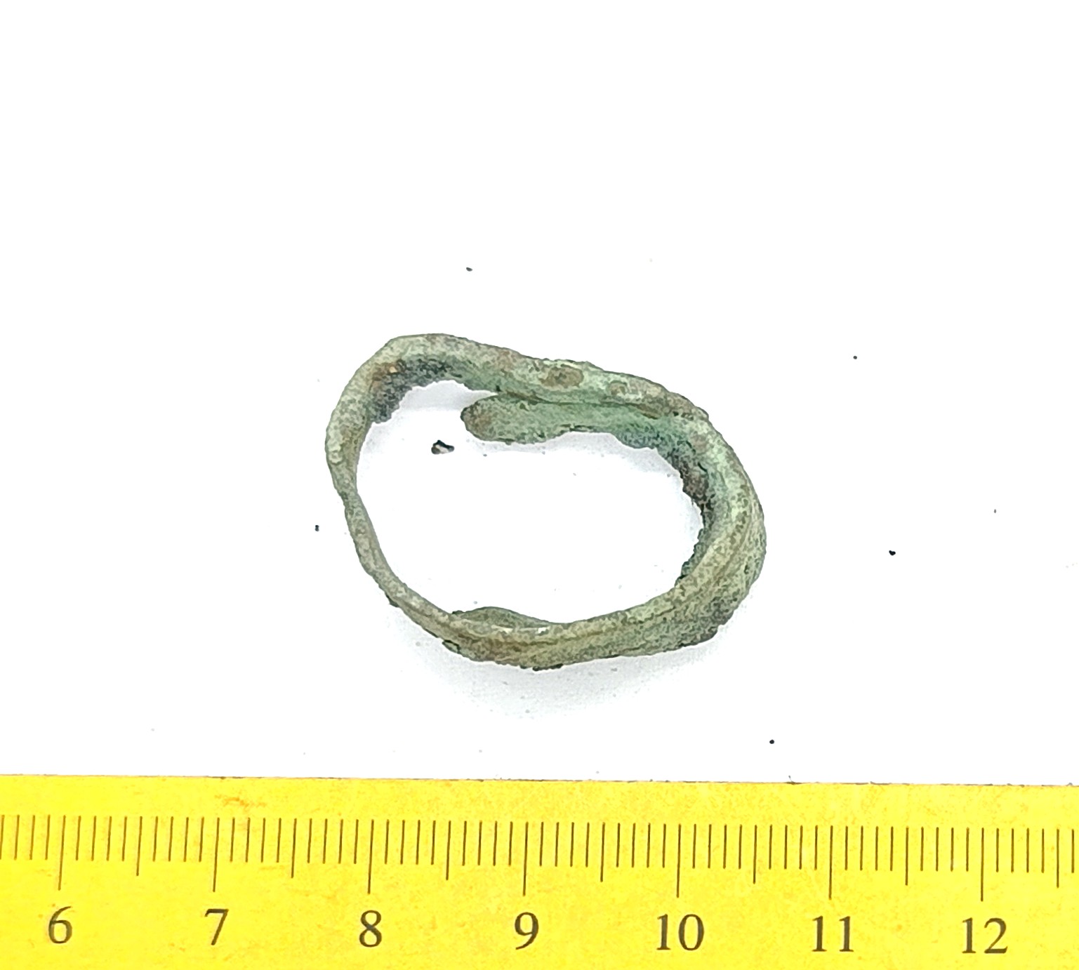 Laieneva keskosaga spiraalsõrmus, vasesulam. Sellised spiraalsõrmused olid levinud Ida-Läänemere rannikualadel ning Loode-Venemaal (Mägi 2002, 108; Valk & Laul 2014, 120-121).
