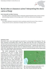 Kaseorg, M., Kohv, M., Rannaäär, K. (2024). Burial sites or clearance cairns? Interpreting the stone cairns of Koigi, Arheoloogilised välitööd Eestis = Archeological fieldwork in Estonia, 2023, 55−54.