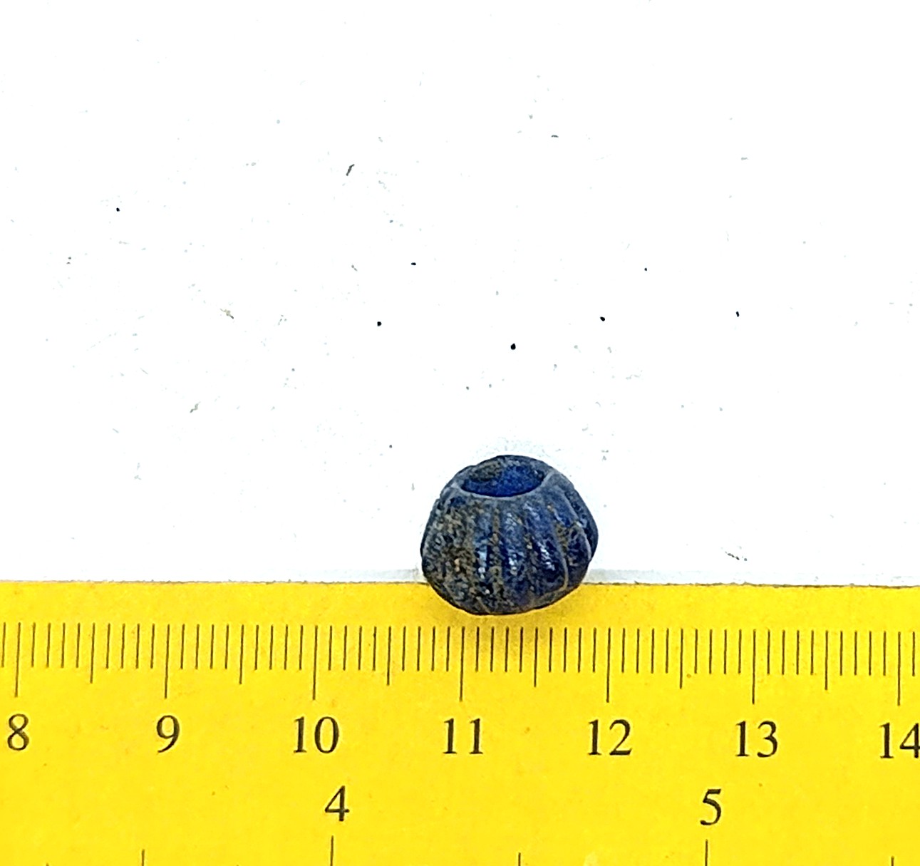 Bead, dark blue glass.