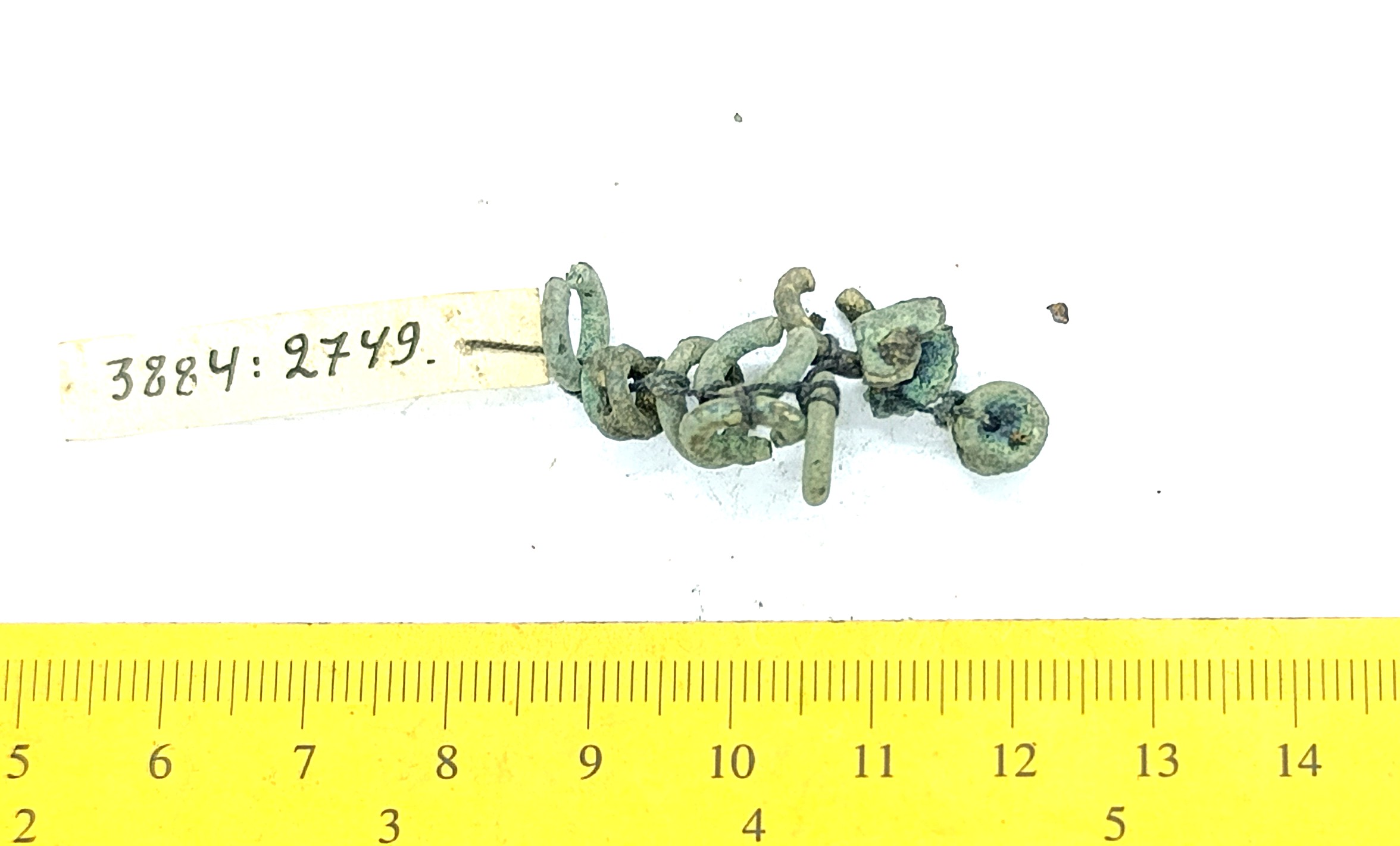Chain fragment with spirals, copper alloy.
