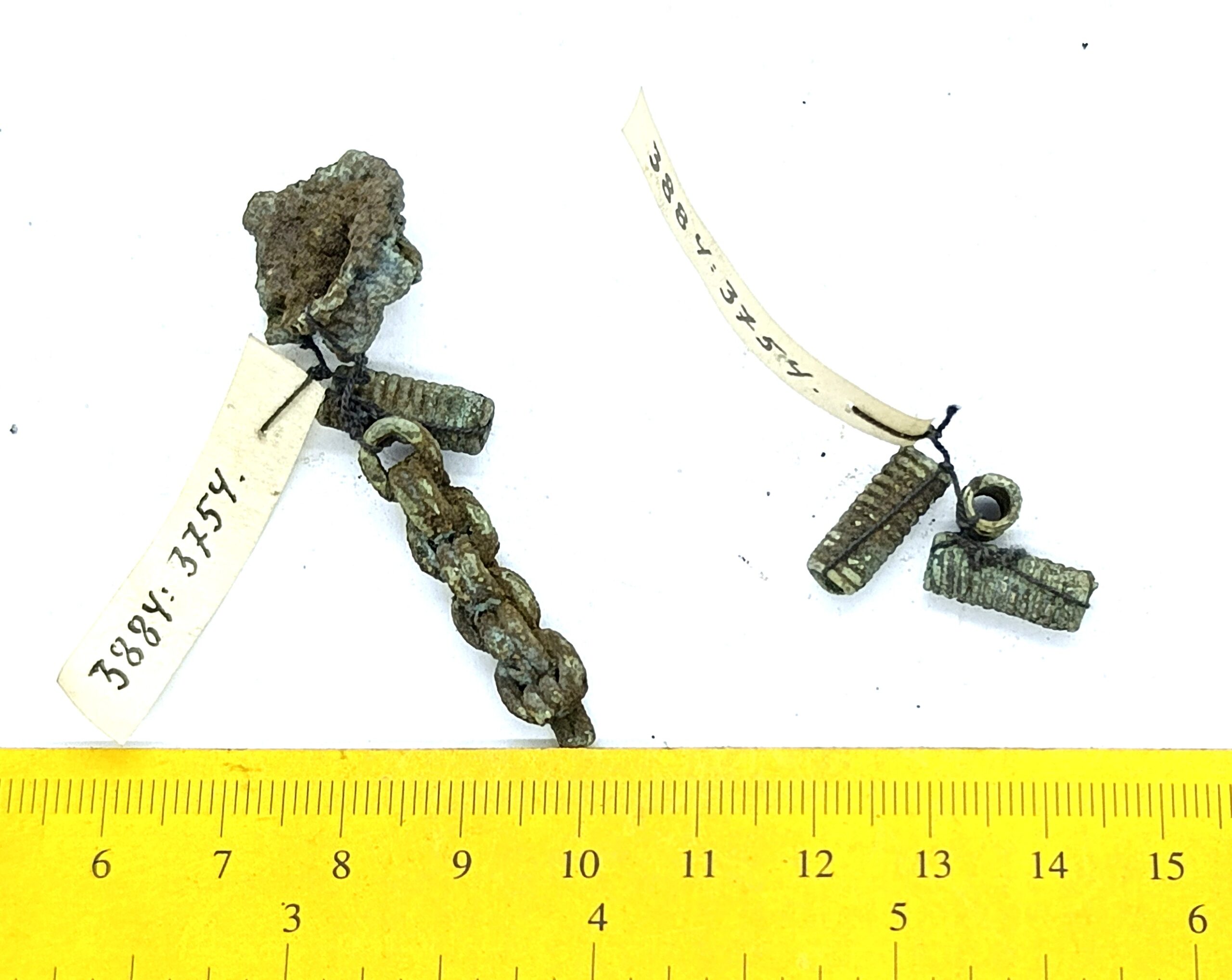 Chain fragments with spirals, copper alloy.