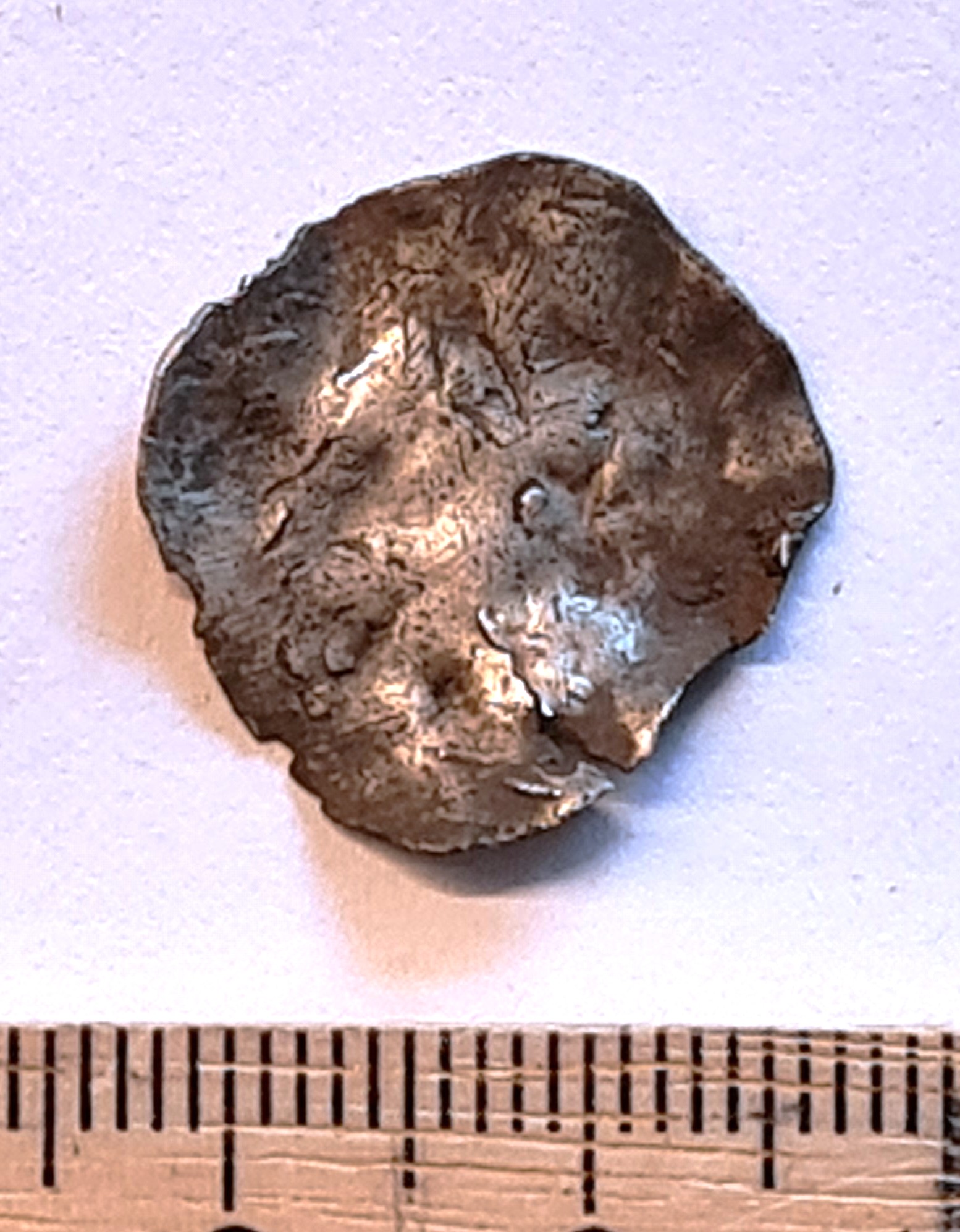 Coin, silver. Very damaged.