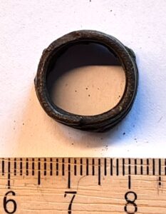 Spiral, copper alloy. Most likely from the 12-13th century.