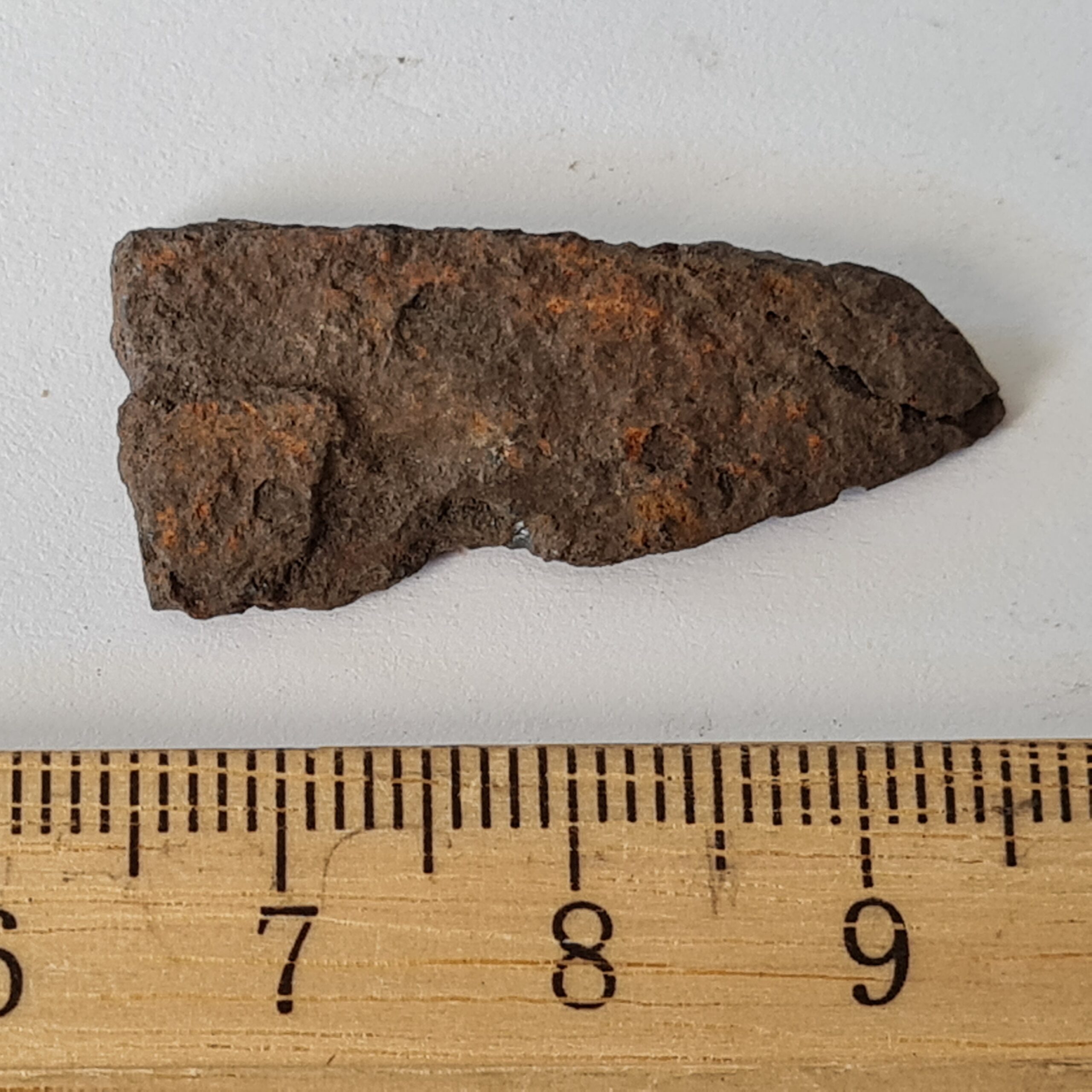 Fragment of pin, copper alloy. Saaremaa type flat triangular-headed pin.