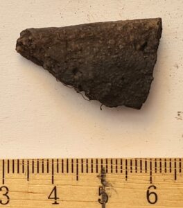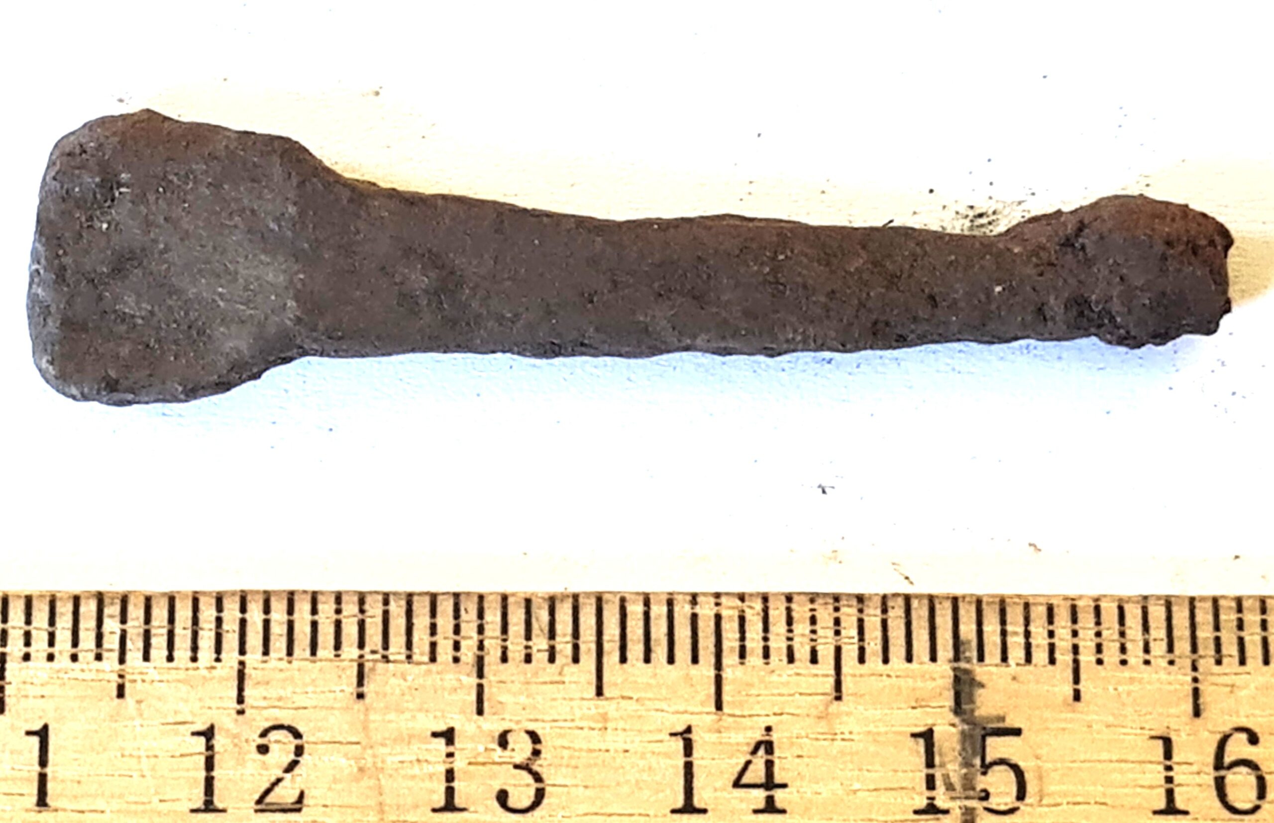 Fragment of iron artefact. Neither edge is sharp; therefore, it is not a knife.