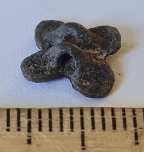 Mount, tin. Medieval or Early Modern. Tin mounts occur in a wide variety of shapes; however, at Siksälä, mounts of this particular form have been found in burials 22 and 33, both dated to the 14th century (Valk et al. 2014, 43, 54).
