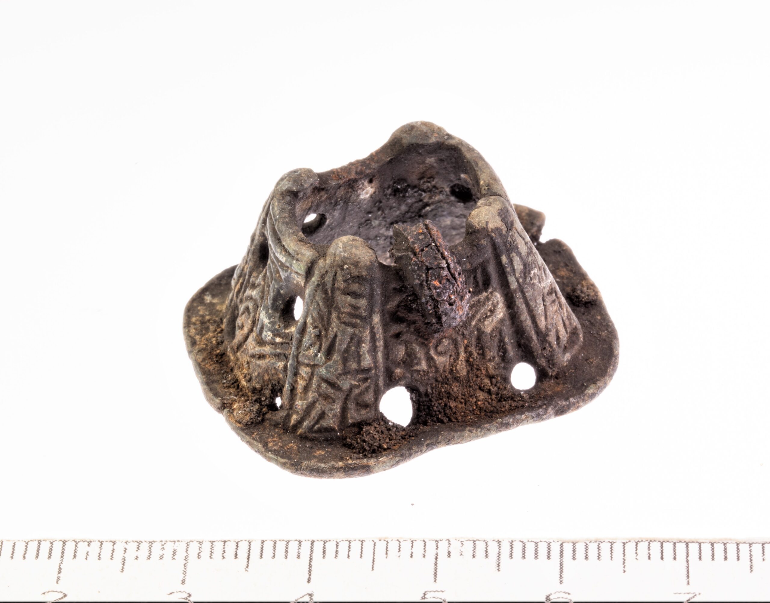 Box-shaped brooch with openwork ornament in Nordic Animal style, copper alloy. Two similar brooches have been found in Birka graves in Sweden (Arbman 1940, Taf 85: 6, 7; 1943, 117-118, 467-468). The second half of the 9th or the first half of the 10th century (Gustin 2017, 224, with reference to Johan Callmer).