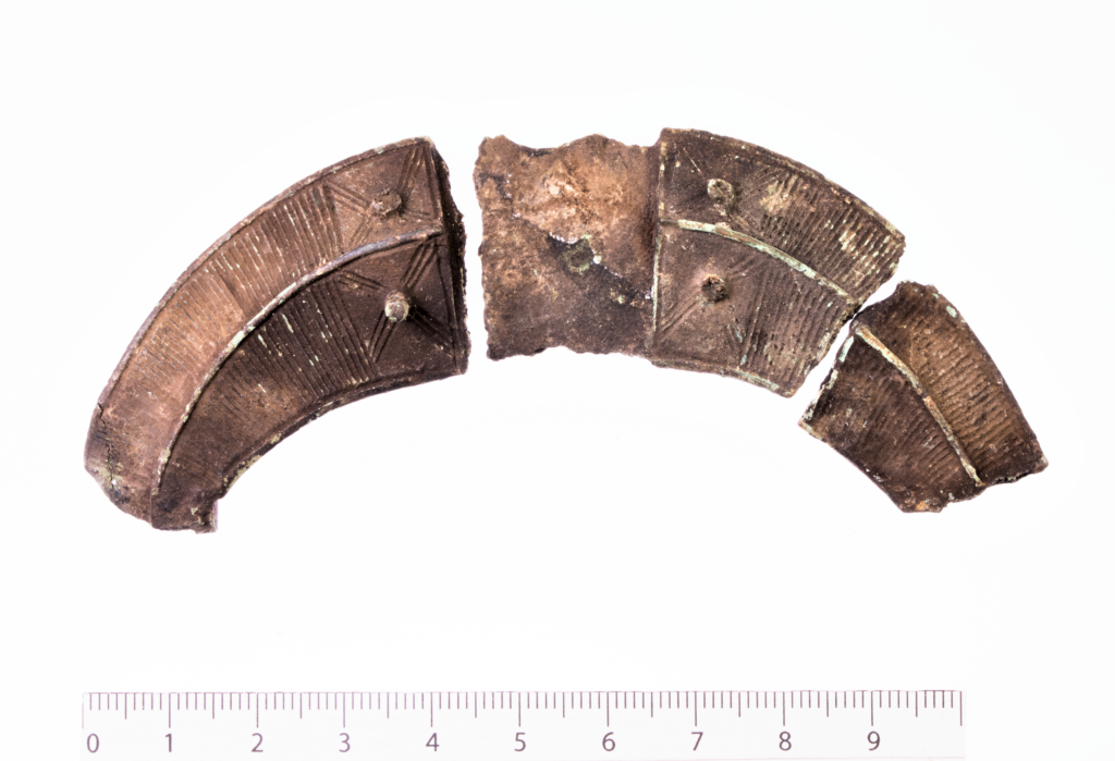 Shield mount (?) of bronze. Similar fittings have been found in Birka and associated with shield handle’s decoration.
