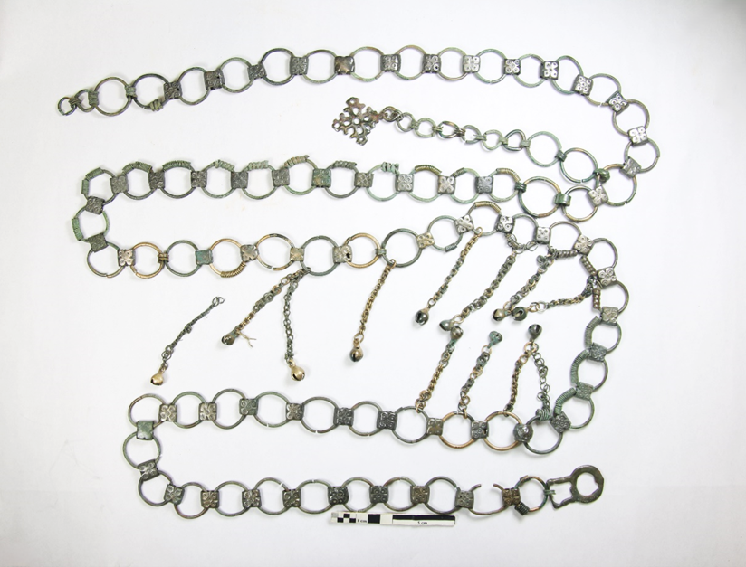 The total length of the belt chain is 2.41 m. Similar belt chains have been found in several 13th-century inhumations, in Saaremaa especially in the graves near the Valjala church (Mägi et al 2019).