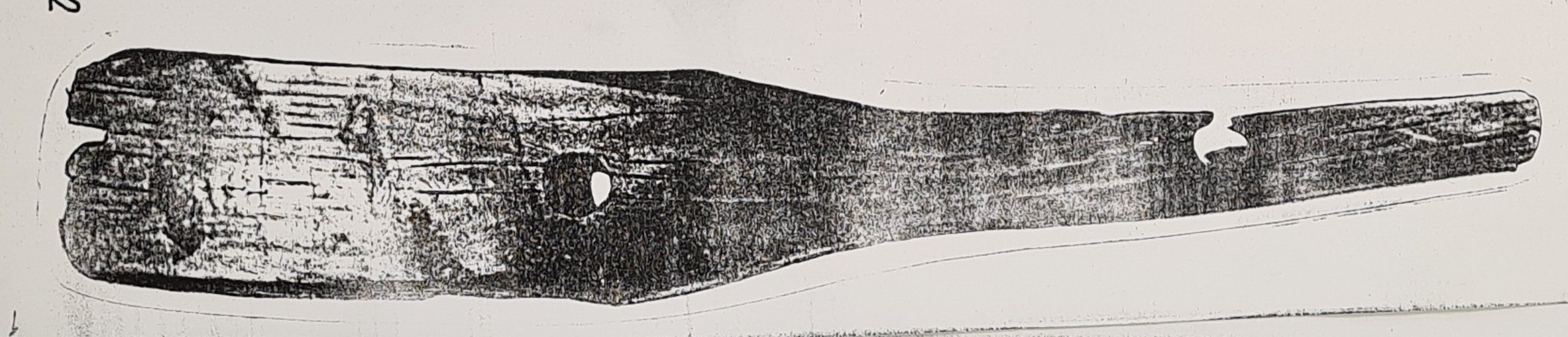 Javelin head with knife-shaped blade and twisted neck. This weapon type was widespread in Saaremaa and coastal Estonia. Similar items have been found at Valjala, Pöide and Muhu hillforts as well as in stone graves, but also in 13th-century inhumation graves at Pada, North-Estonia.
